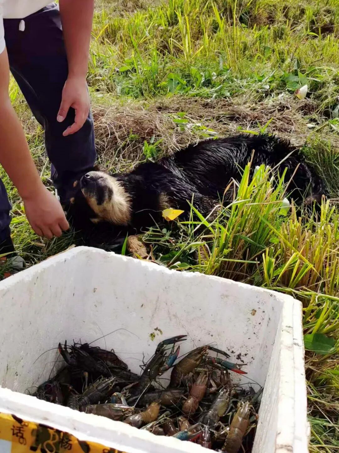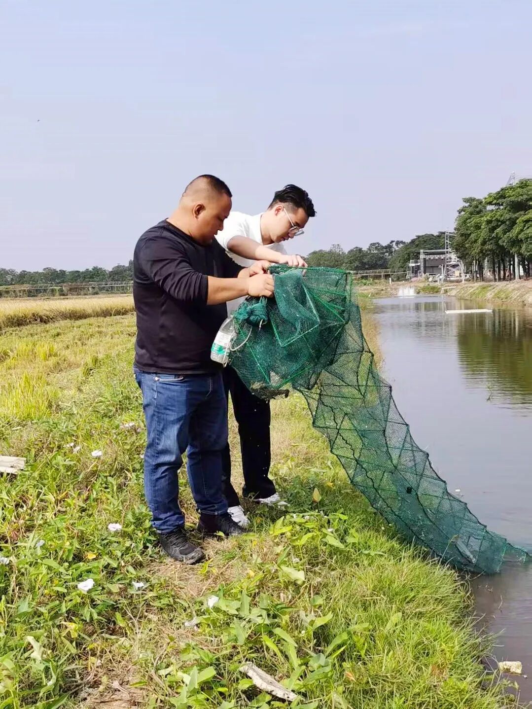 基地不但稻谷丰收,还有一样“宝贝”也到了收获的最佳时机。在稻田下游的水沟里,工作人员正在收虾笼,笼子里的澳洲淡水龙虾只只青背红脚、生猛肥美,连一旁的狗也看得馋涎欲滴。“这批虾大概亩产有500多斤,现在每斤价格可以去到56元左右。因为这个不是高密度养殖,加上现在的小红龙已经退市了。澳洲淡水龙虾刚好填补市场空白,销路可观。”基地负责人古伟杰说。