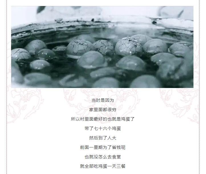 在视频中,刘强东称:“当时是因为家里面都很穷,所以村里面最好的也就是鸡蛋了。带了七十六个鸡蛋,然后到了人大。前面一星期为了省钱呢,也就没怎么去食堂,就全部吃鸡蛋一天三餐。”