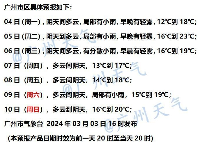 广州方面,Sunny哥继续放假,小雨刷屏,加上新阿冷周三就来,厚衣服留着防湿冷。