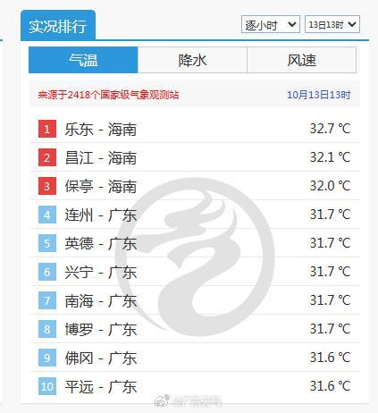在大家都忙着“入秋”“入冬”的时候,广东和海南这两兄弟继续以30℃+霸占全国高温榜。