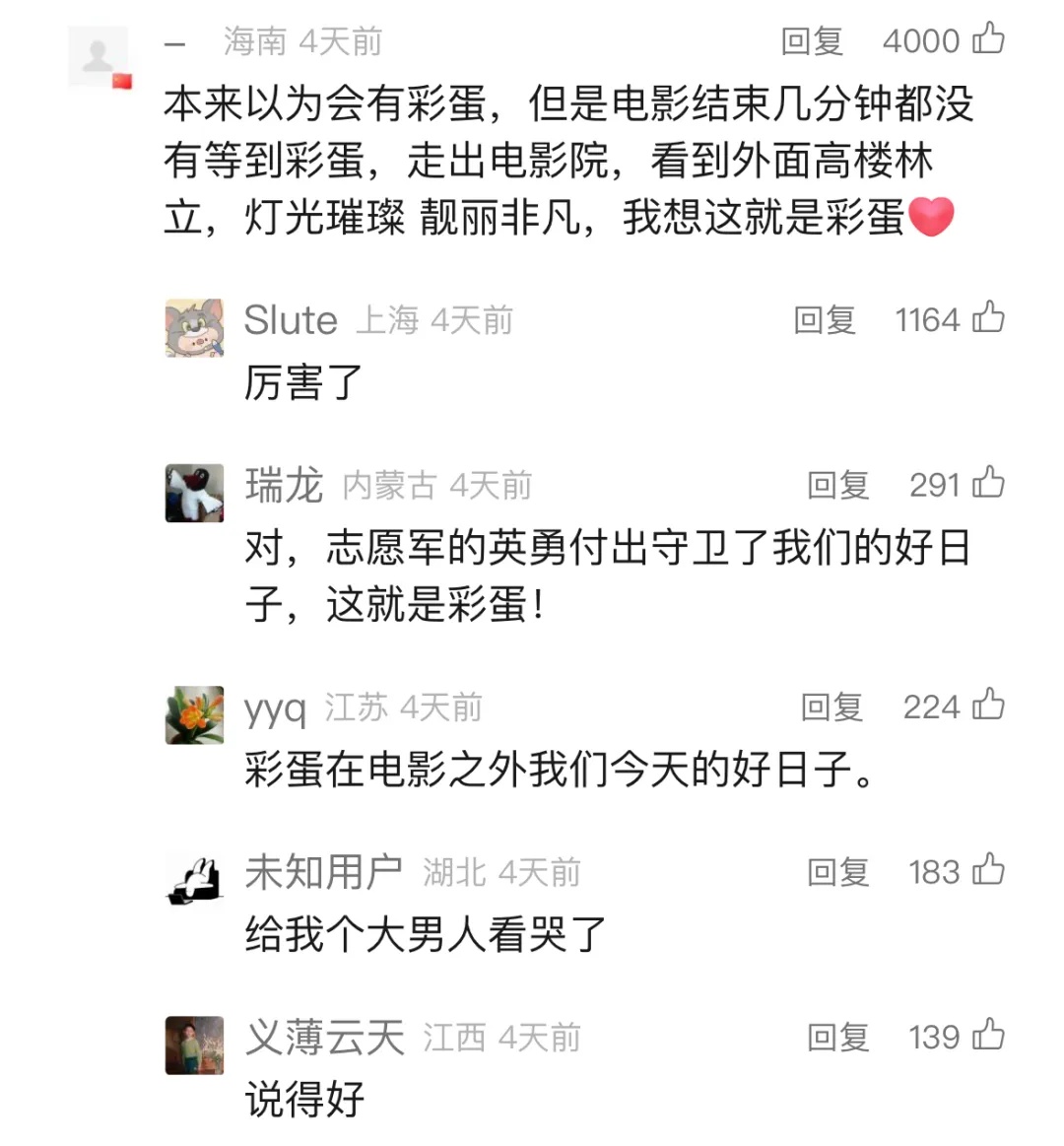 有网友说,看完电影走在街头,看见高楼林立、灯光璀璨,这就是电影结束后的“彩蛋”。