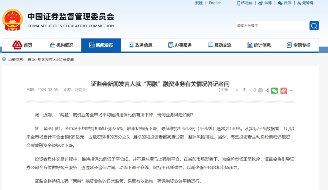 5日午间,证监会新闻发言人就“两融”融资业务有关情况答记者问。