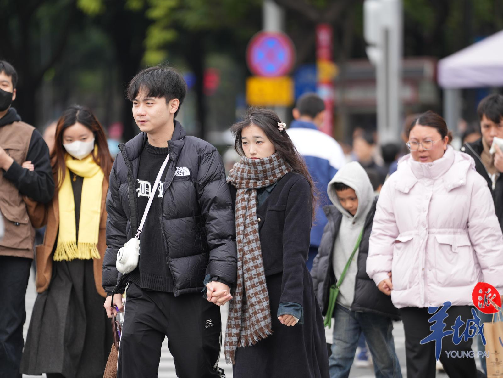 12月15日早晨,广州市民戴围巾、帽子,穿厚衣出门。图/羊城晚报记者 梁怿韬 摄