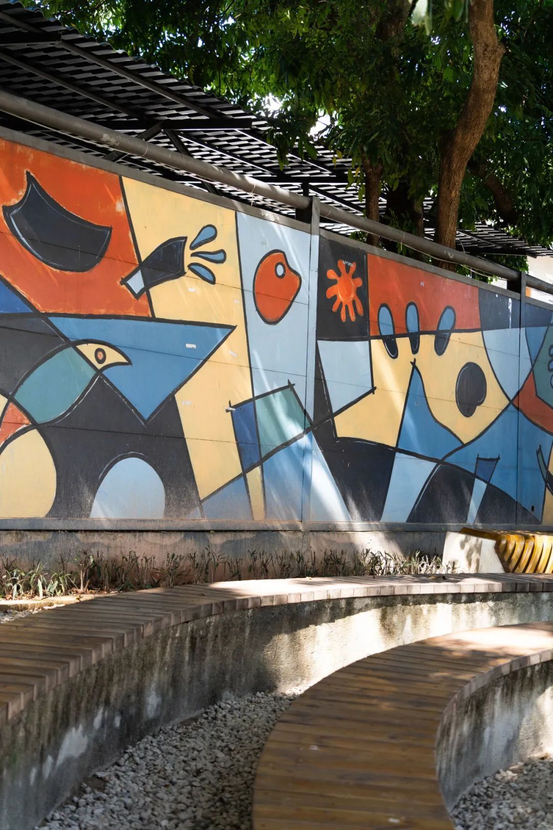 俄地吓村的共建花园中,由艺术家和居民共同完成的涂鸦墙。