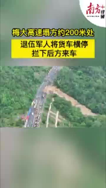 这位河南退伍军人好样的!梅大高速塌方约200米处,他将货车横停拦下后方来车