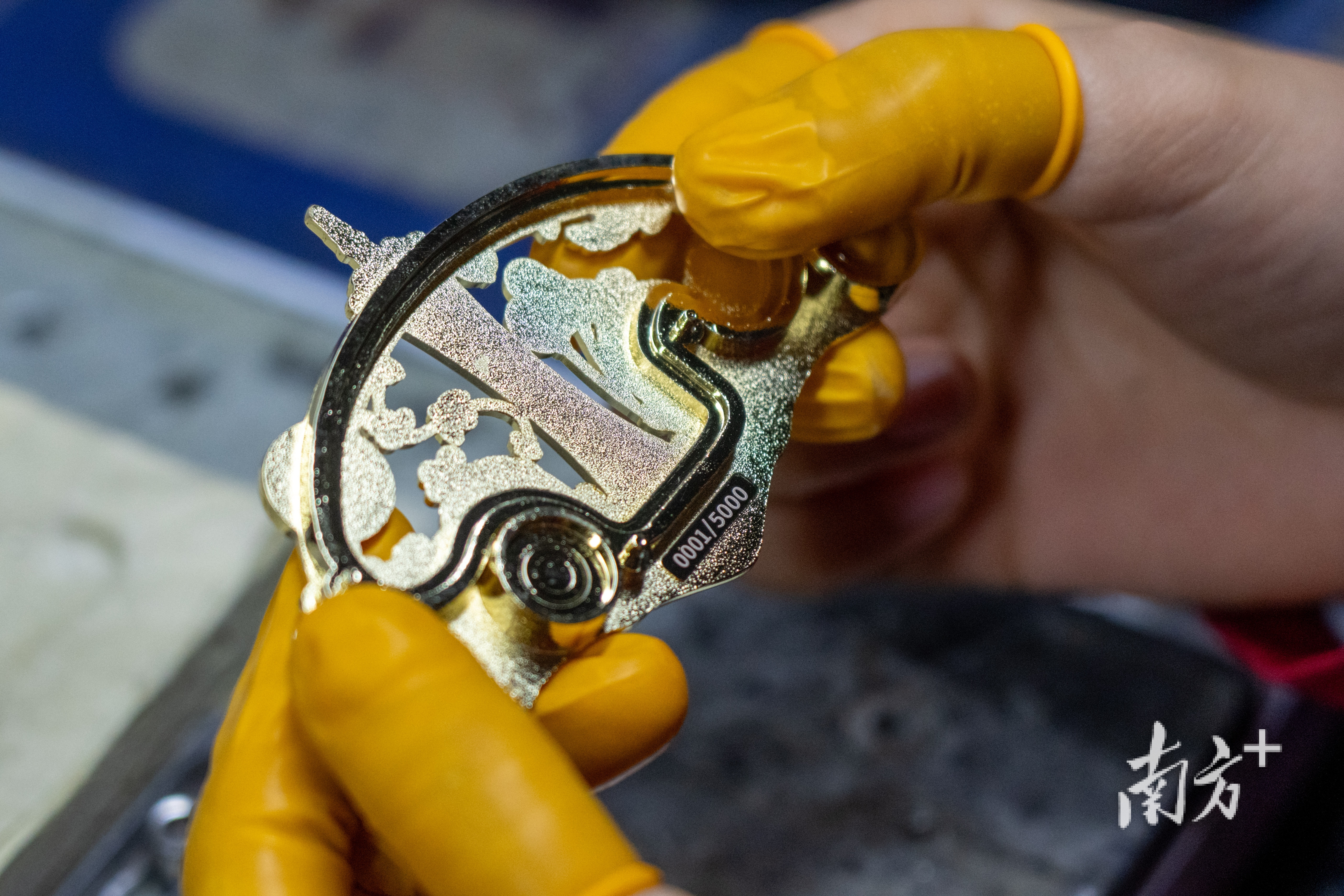 这枚售价88元的锌合金冰箱贴,生产中要经过多道工序。首先是开模,然后是压胚,再是抛光打磨、电镀。产品经过工人的检验之后,再进入到上色、UV印刷、撒粉、激光刻字等环节。
