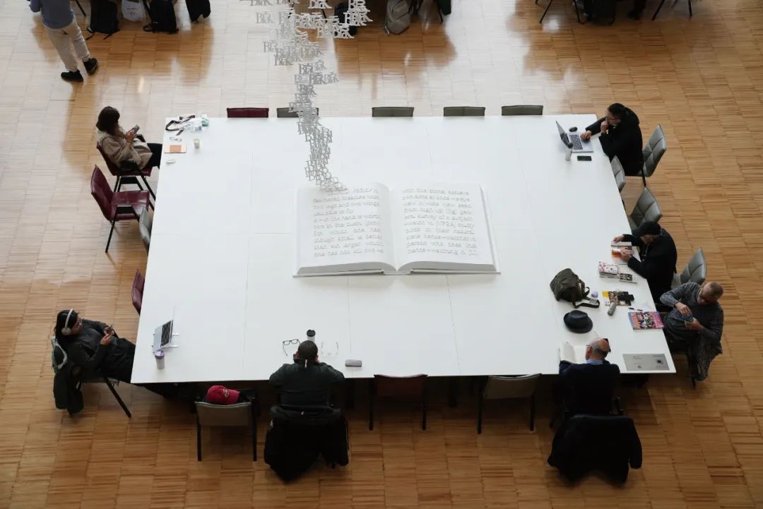 ▲在阅读区自习的人们,这也是 《鸟飞了》 徐冰艺术装置的起点