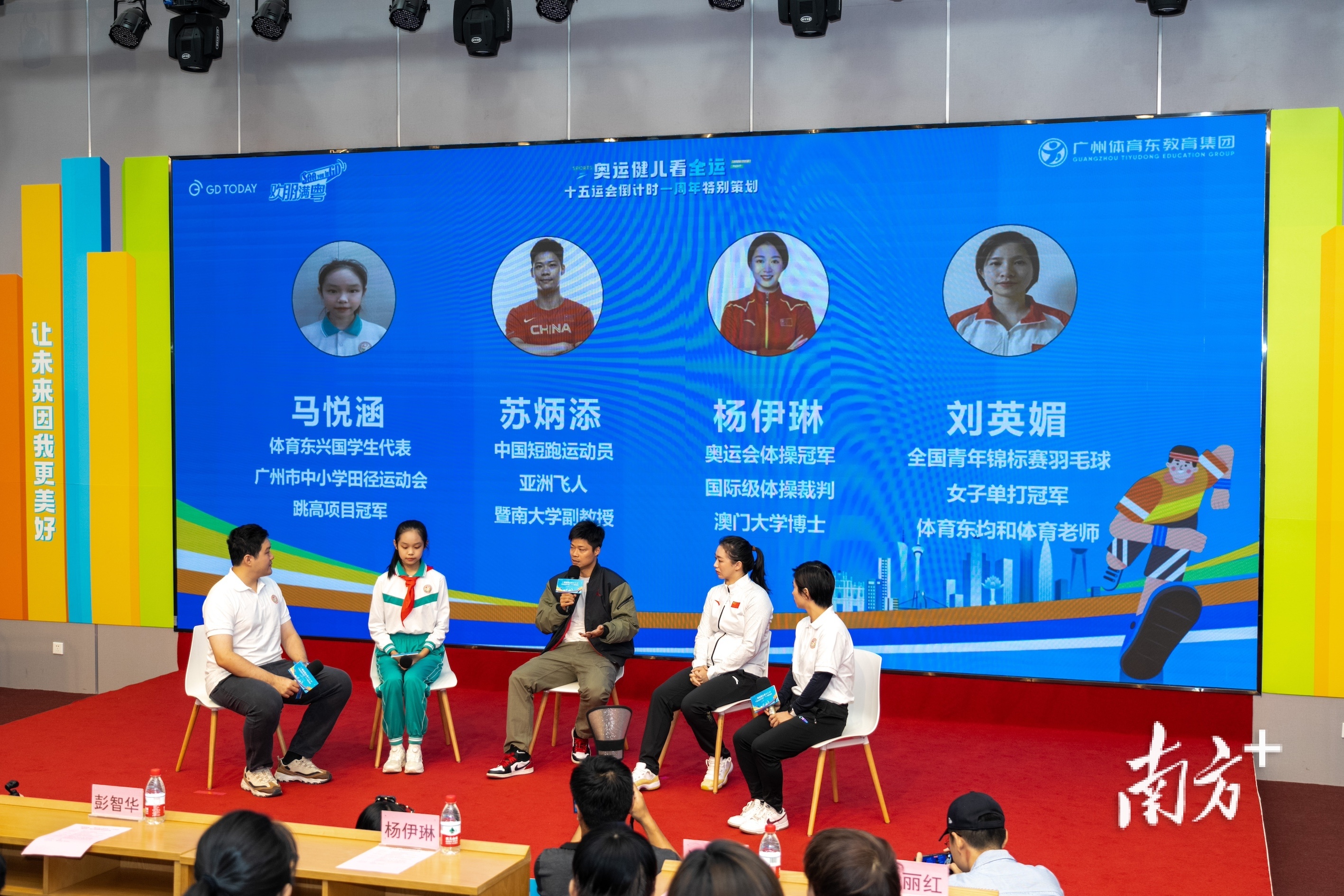 “亚洲飞人”苏炳添、体操奥运冠军杨伊琳先后现身,来到“欢朋满粤——奥运健儿看全运”十五运会倒计时一周年特别策划活动现场,和全校师生共同迎接这个值得纪念的时刻。