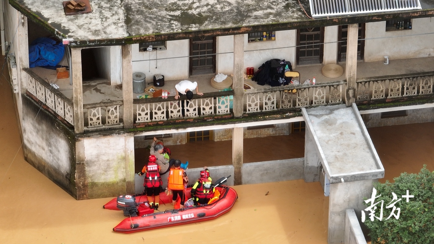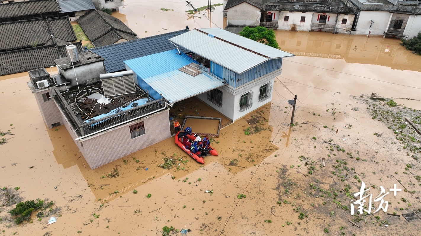 蕉岭新铺紧急转移群众:刚上冲锋舟,房子就被水冲倒了
