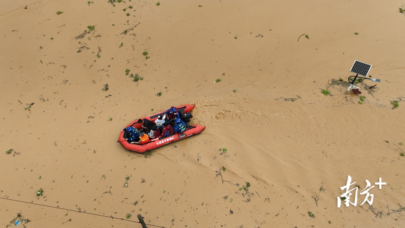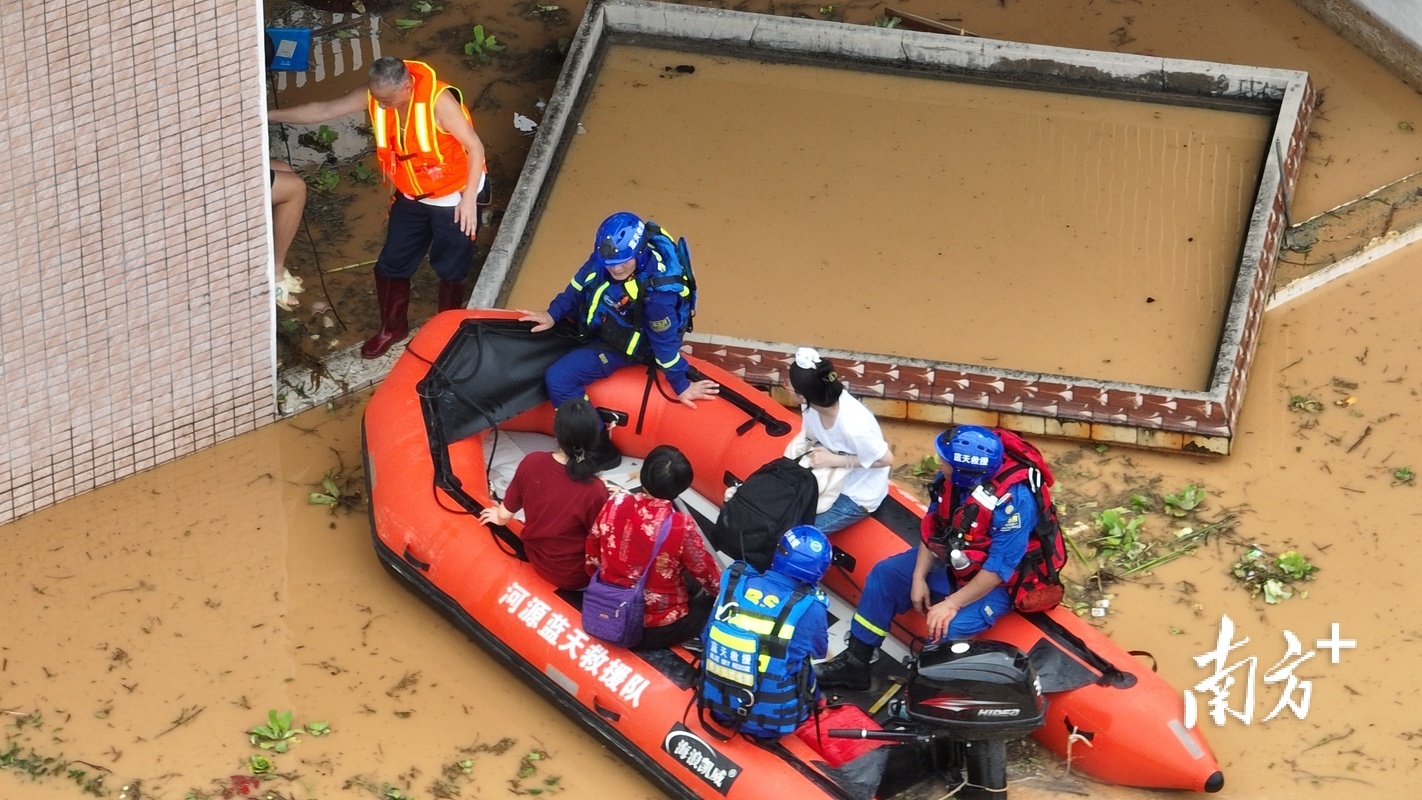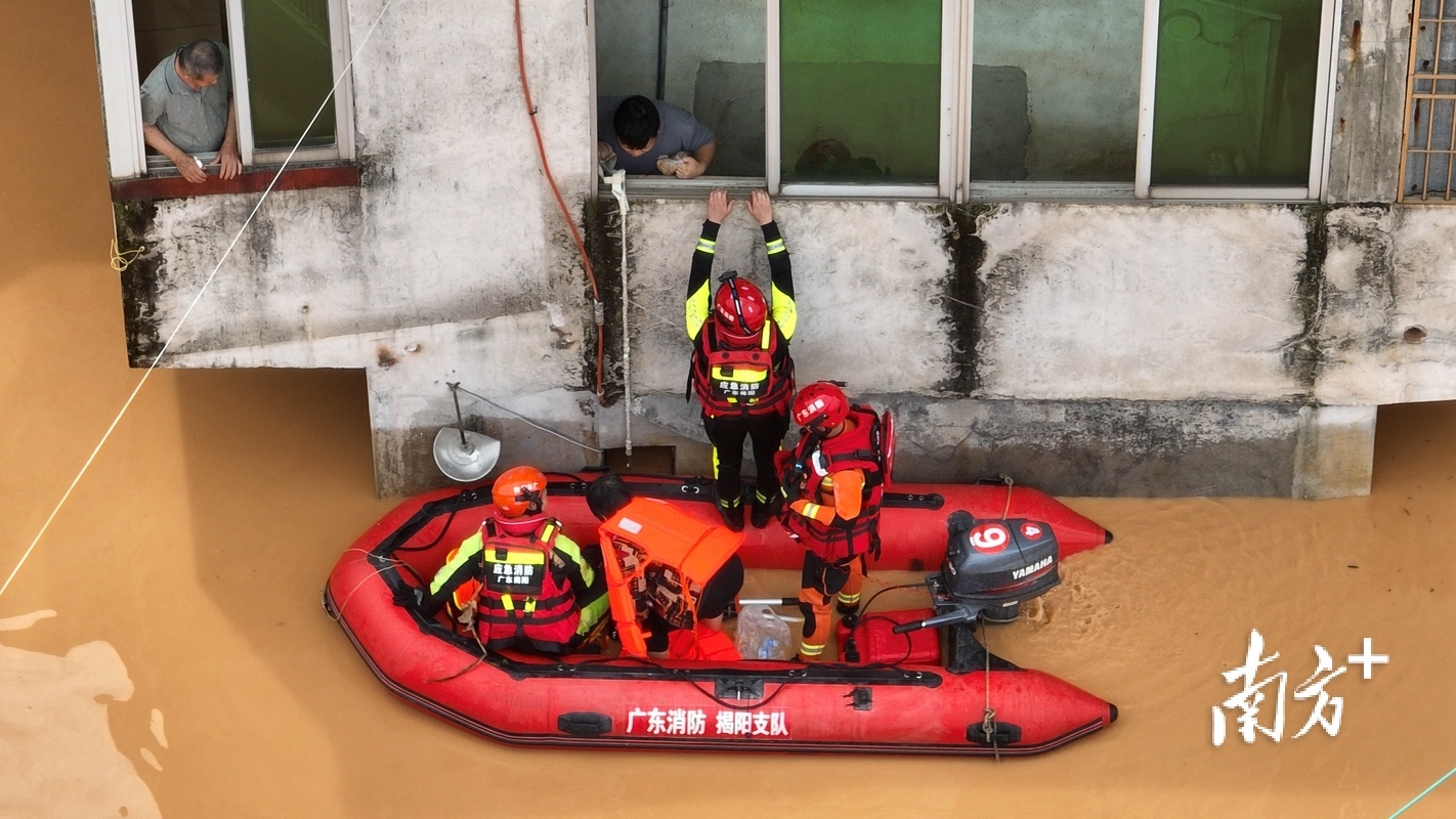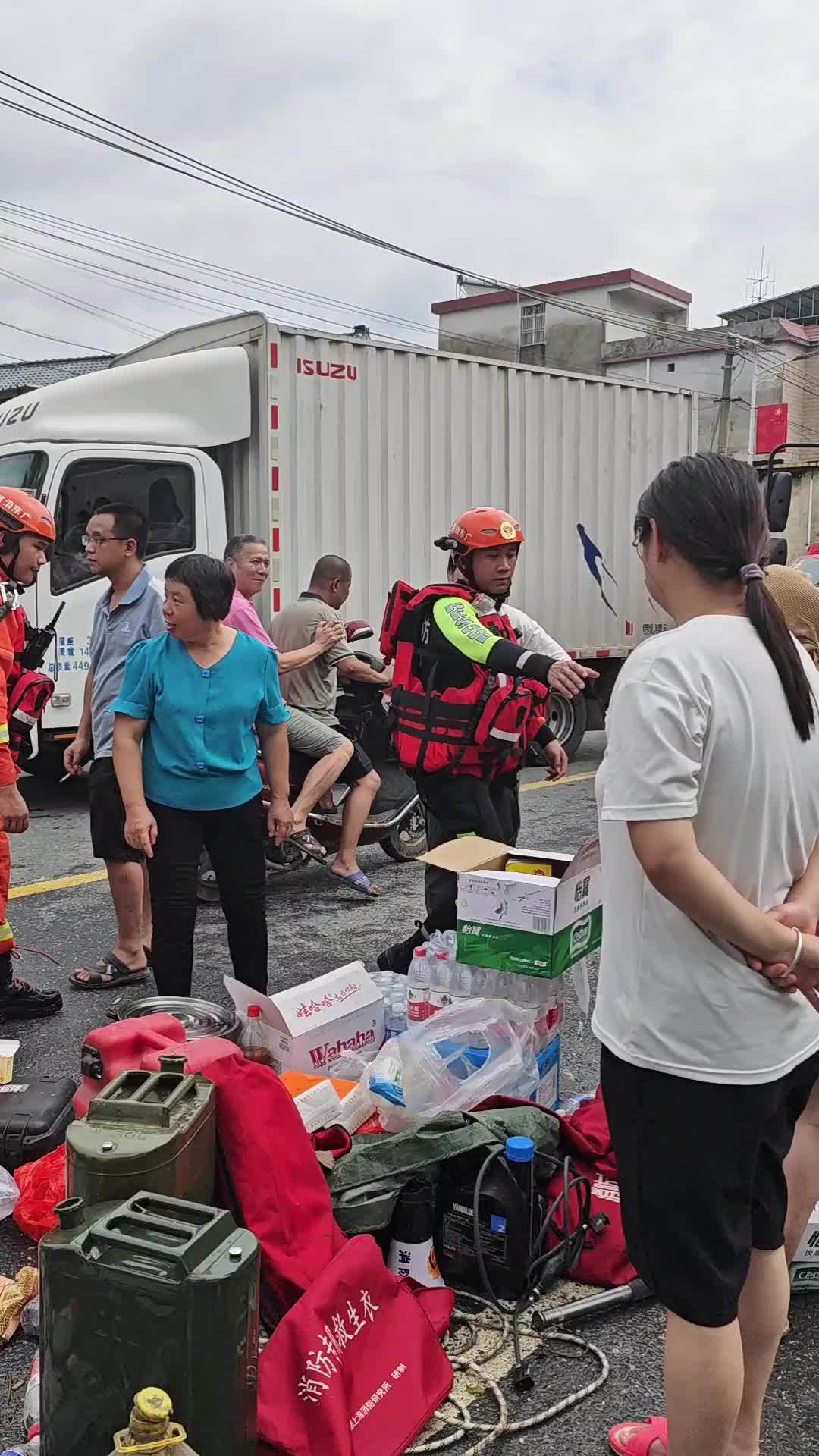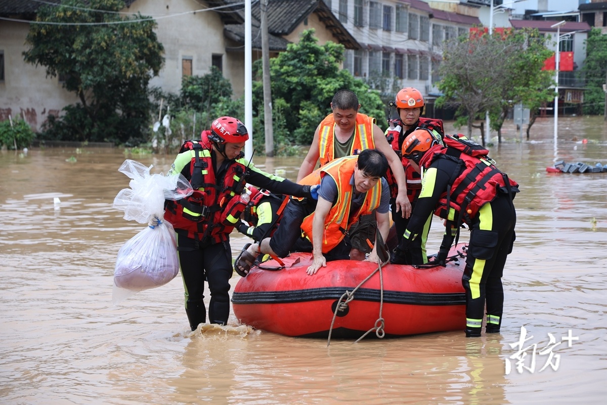 从昨夜至今,镇村干部仍在紧急转移群众,抢险救灾。目前,镇内已调来挖掘机,计划疏通周边河涌排涝。同时,在场消防救援人员利用皮划艇进入村内,对受困群众持续进行转移。