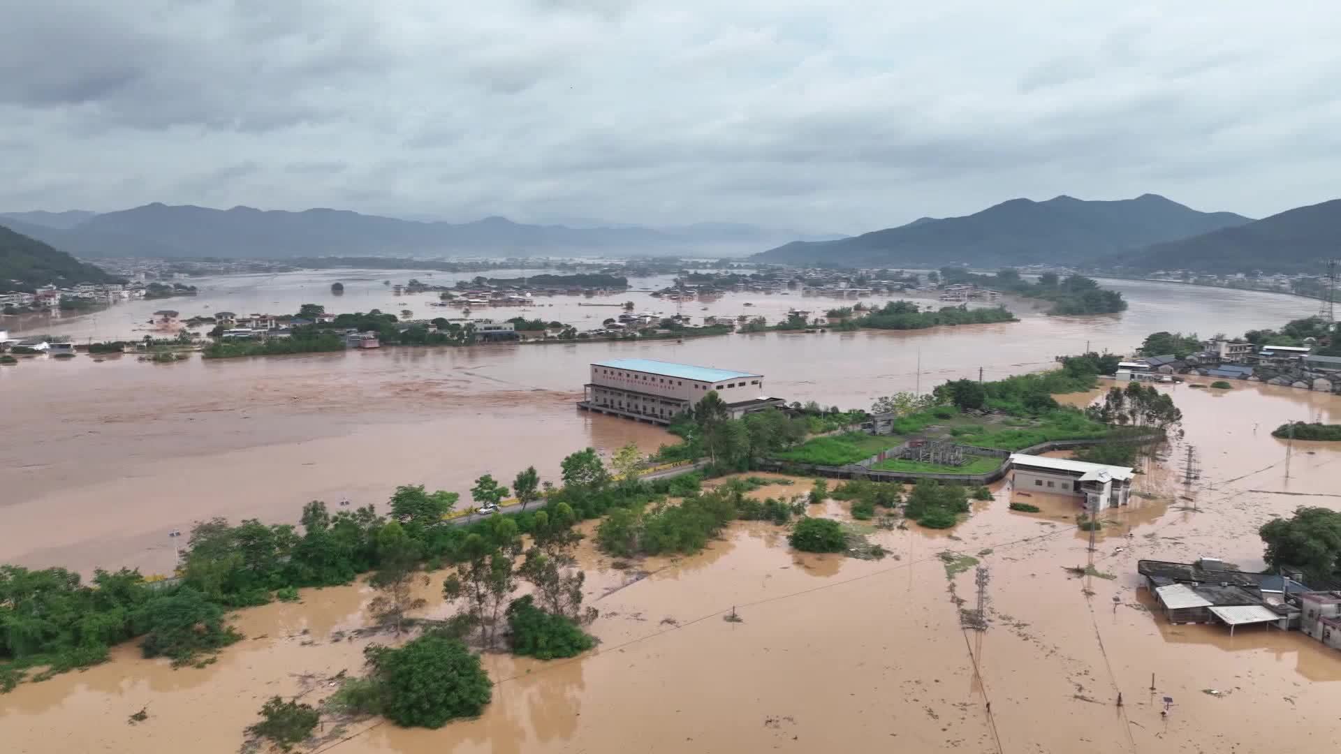 6月17日上午,南方电网广东梅州蕉岭供电局对受灾的南礤镇变压器进行抢修,南礤供电所员工利用停雨间隙携带无人机开展灾后巡视勘察。