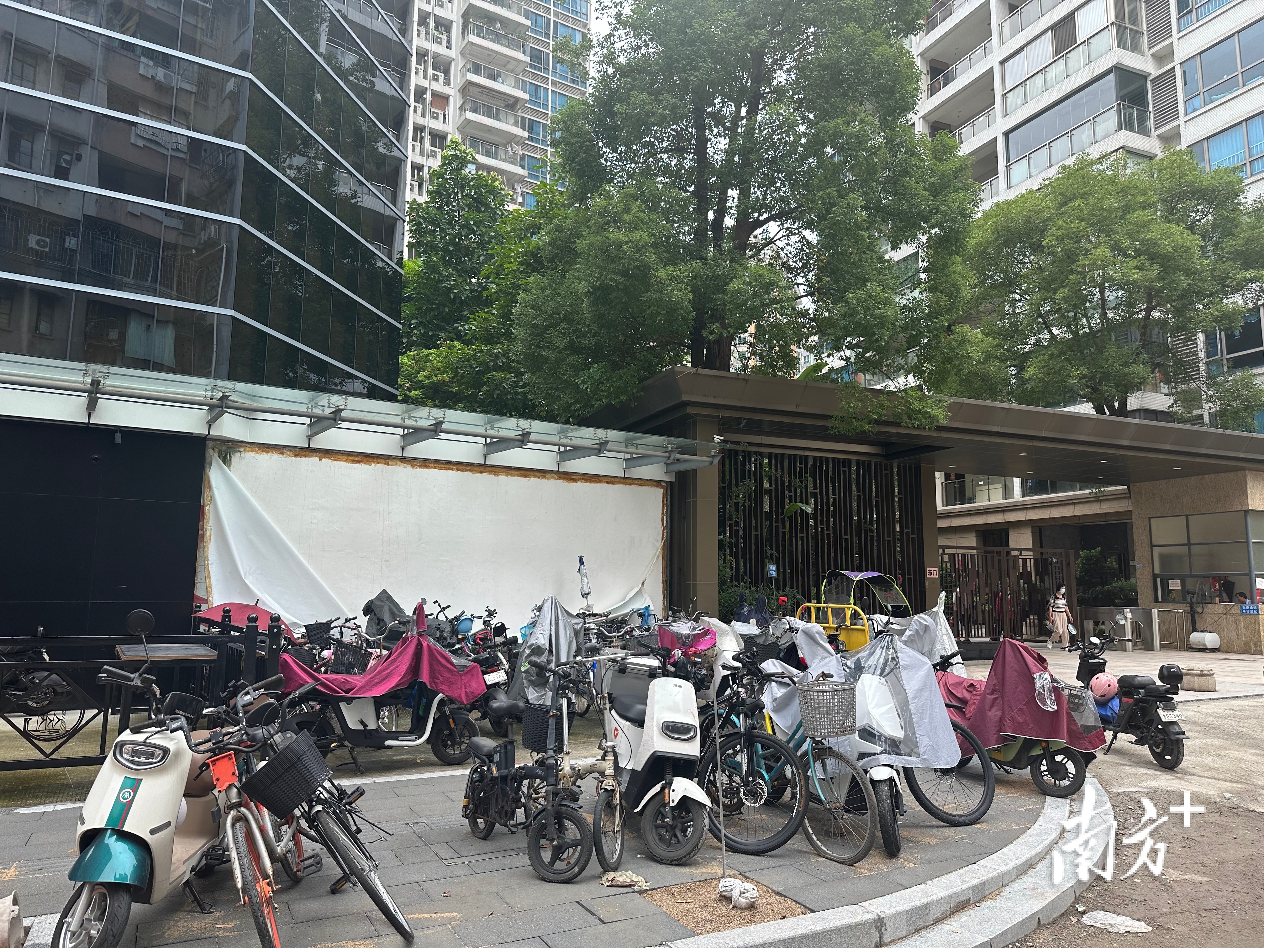 越秀区东海嘉园外,电动车“出小区”后充电不便,日晒雨淋