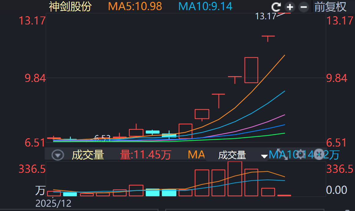 自12月18日起,神剑股份的股价一飞冲天,实现6天连续涨停,近一年涨停17次。神剑股份为航天科技集团提供卫星天线等零部件,直接参与星网项目建设。