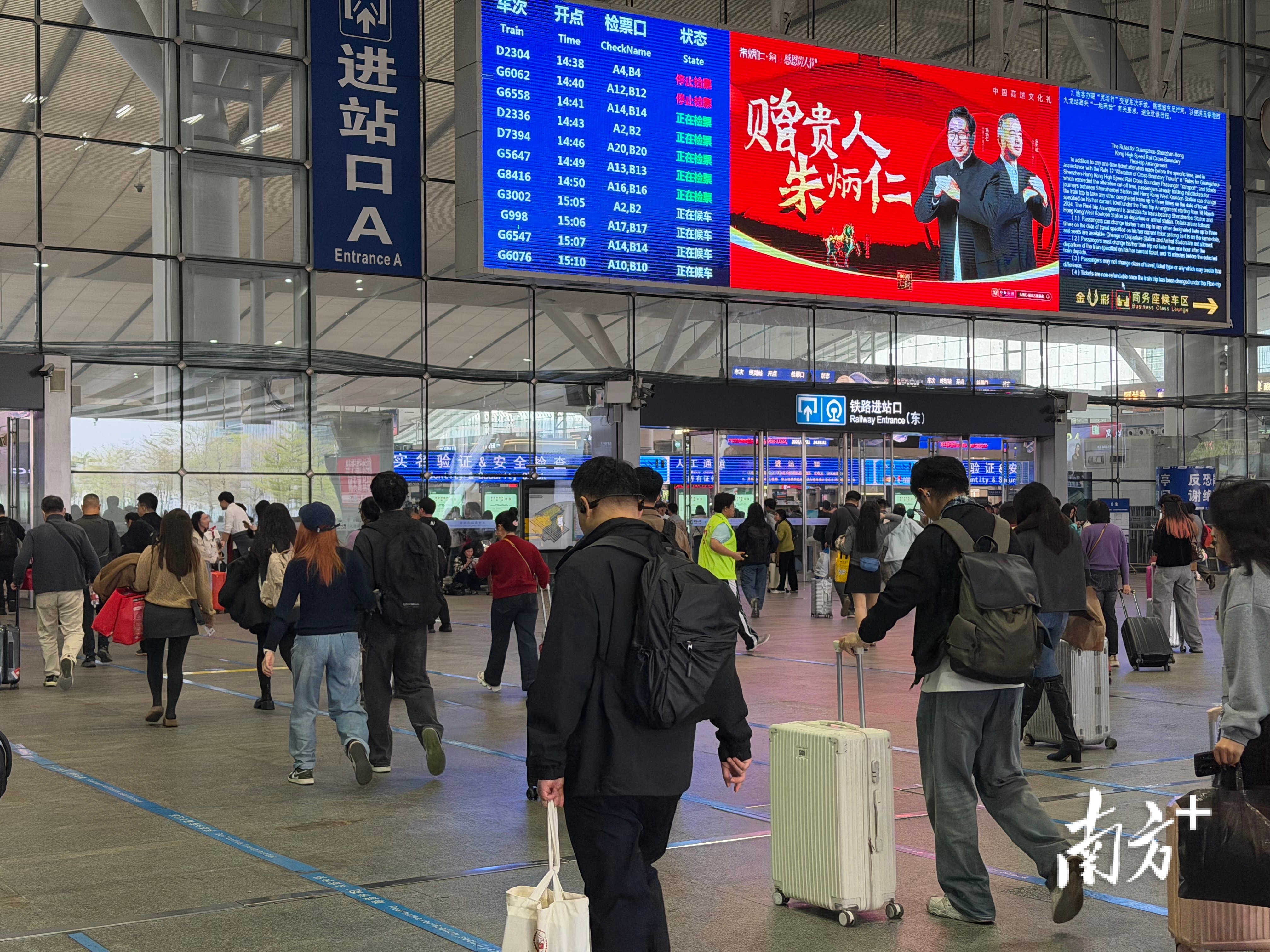 在保障运力的同时,广州南站持续优化服务举措,在一层、三层的候车信息大屏中,新增具体车厢所对应的检票口,指引更加清晰,旅客出行更加便捷。深圳北站加强与地铁等交通部门的协调,出站口设置公共交通工具接驳标识,有序引导到达旅客出站接驳,并将2025年12月31日地铁的运营时间延长1至2.5小时,2026年1月1日、2日地铁的运营服务时间延长0.5小时,切实畅通旅客出行“最后一公里”。