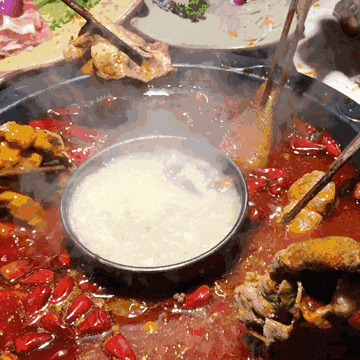 火锅汤汁咕噜噜翻腾