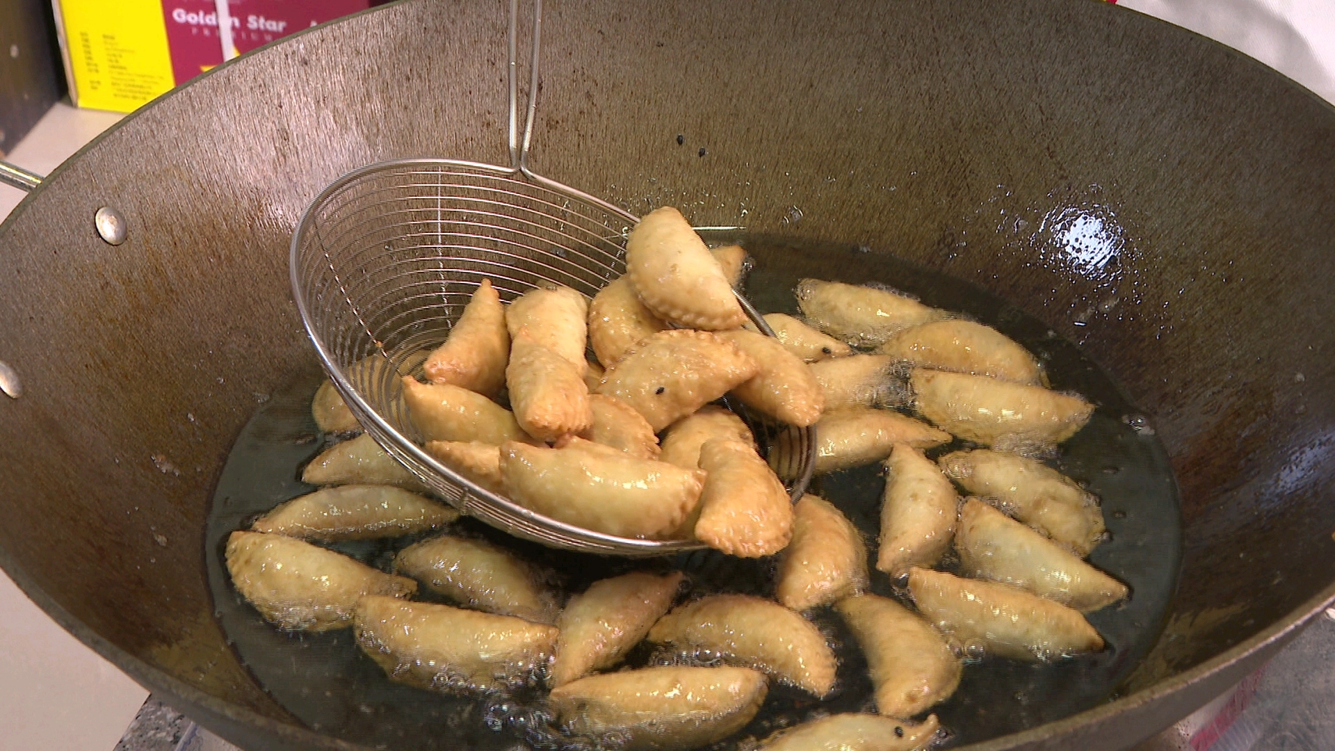 在广东,为春节准备的煎堆、油角、糖环等炸物,已陆续开始制作。