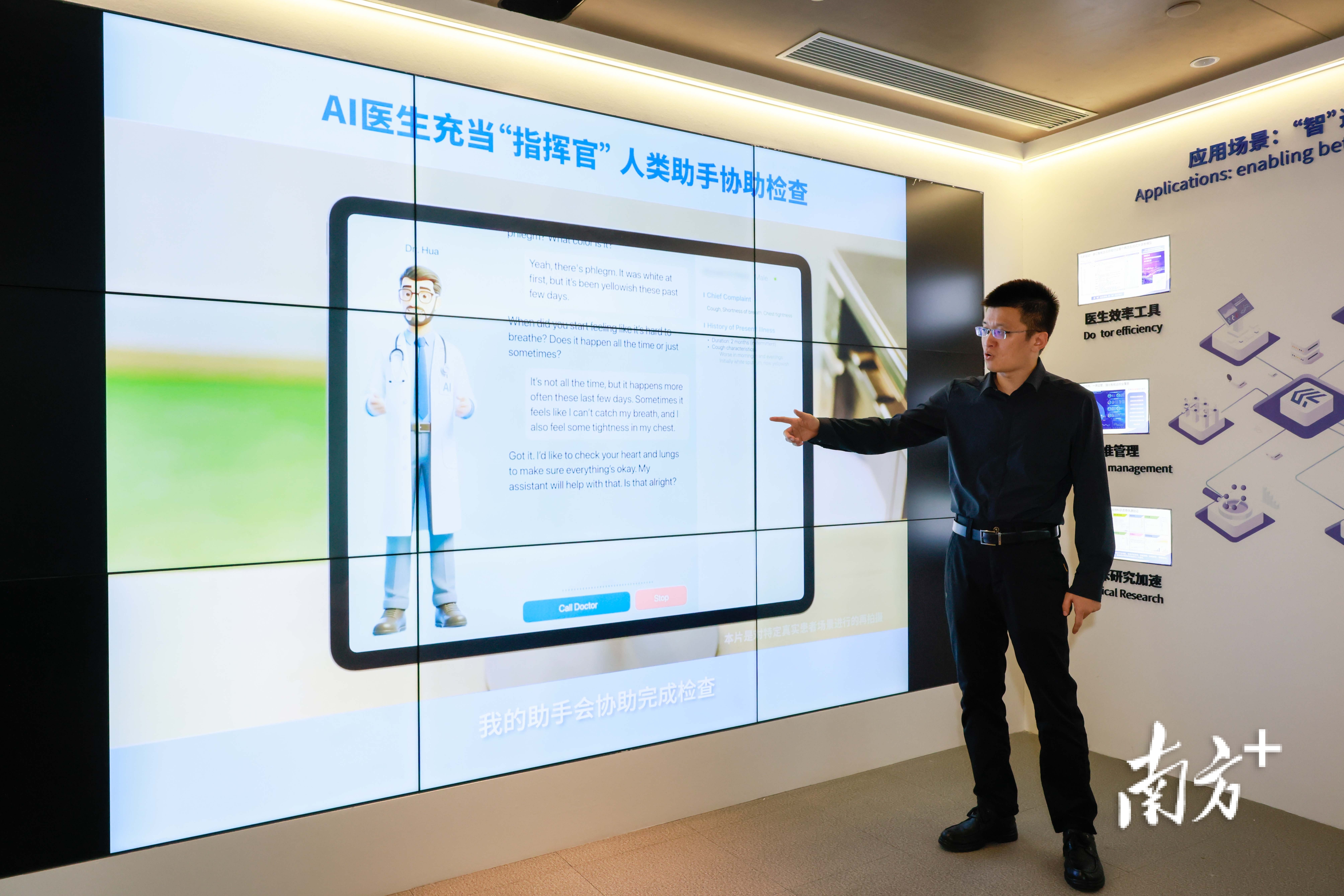 屏幕上,一位名为“华医生”的AI医生用流利的英语询问症状:“最近是否有咳嗽?是否伴有发热?”