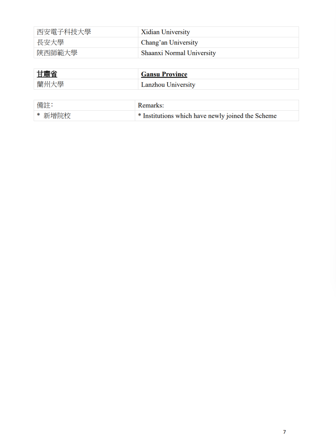此外,于指定内地院校修读学士学位课程的合资格香港学生,可申请内地大学升学资助计划下的经入息审查资助或免入息审查资助。内地大学升学资助计划不设名额上限,资助款项按年发放,资助年期为有关学生于指定内地院校就读的学士学位课程的正常修业期。合资格申请人只可在同一学年内,接受经入息审查资助或免入息审查资助二者其一。