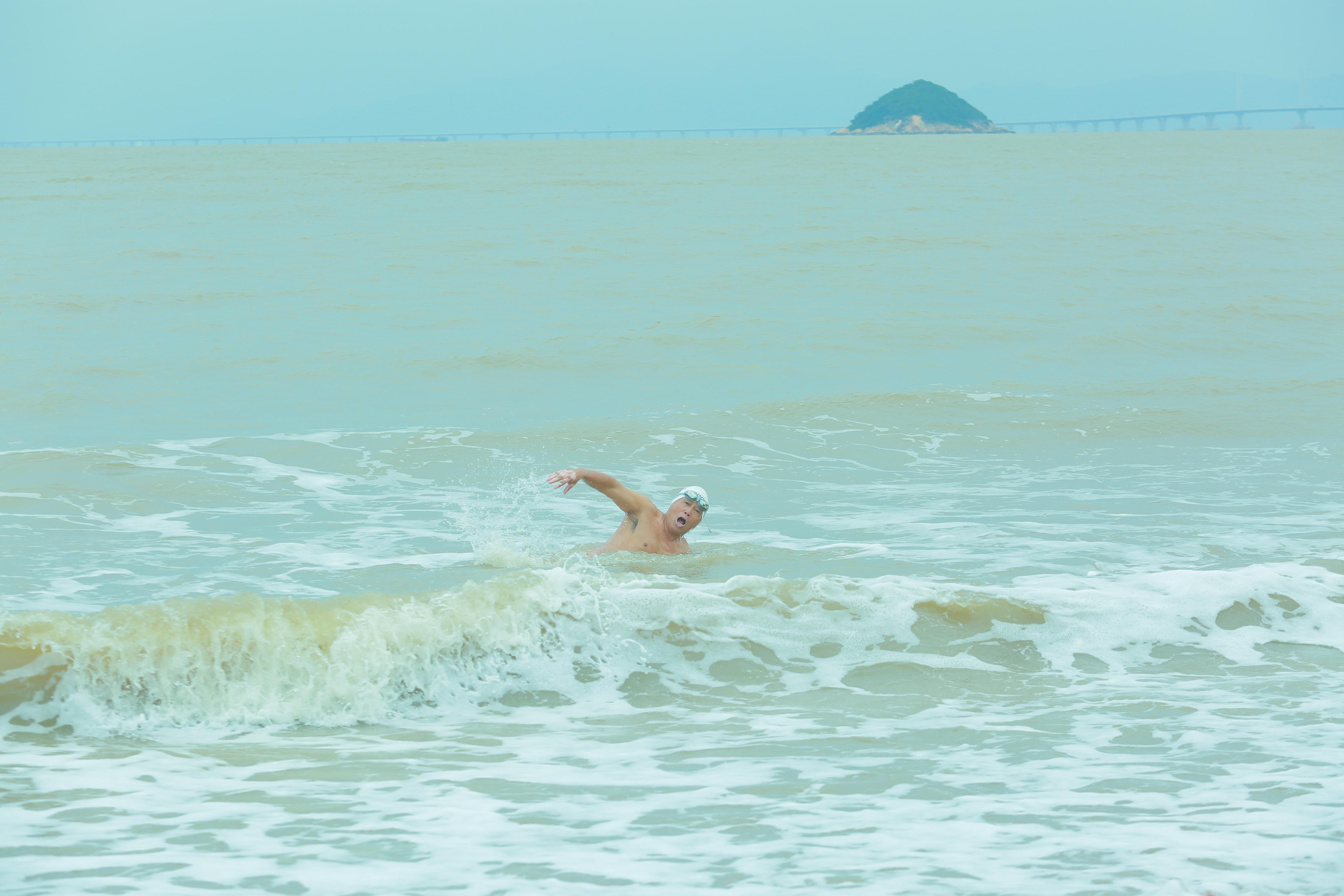 “珠江涨潮,潮水使得前进格外艰难,五个划臂才前进一米。”他表示,横渡珠江原本顺流半小时可完成的距离,他最终用了一个多小时,沿防水墙艰难游完全程,登岸时虽疲惫却满怀喜悦。