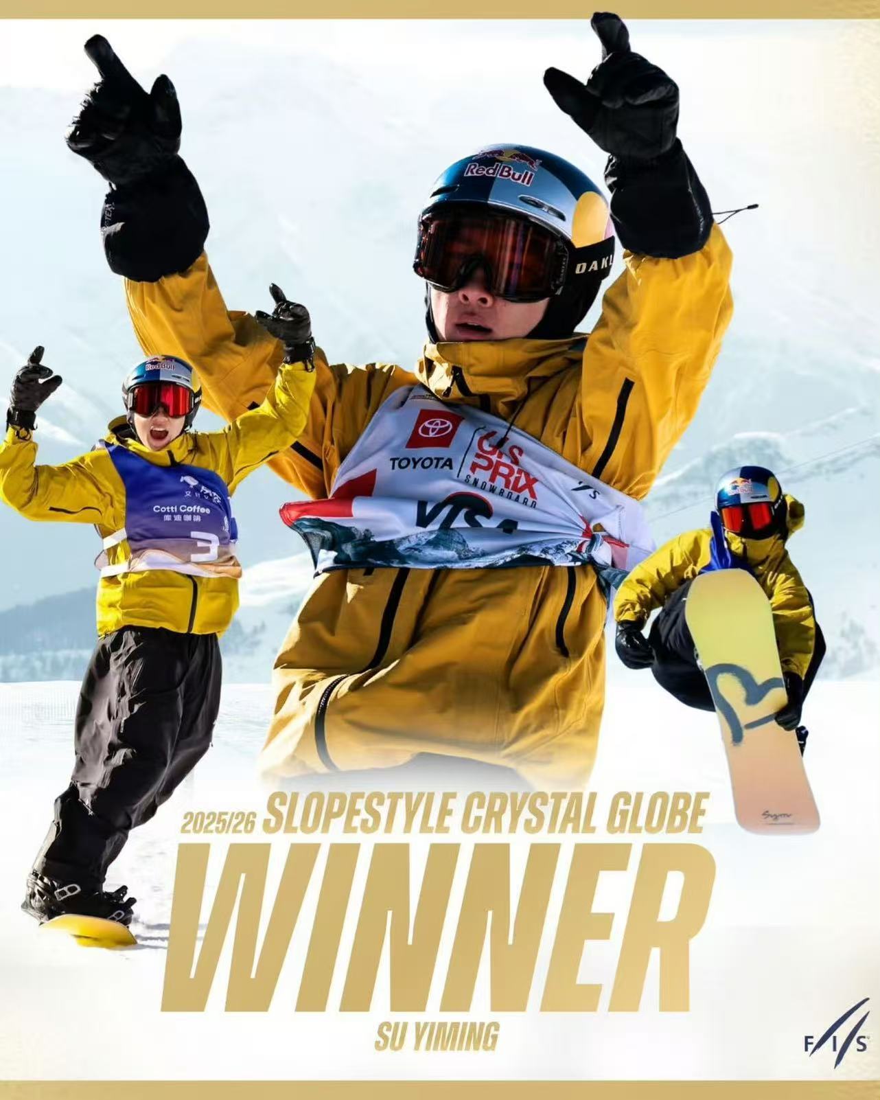 尽管收官战因天气取消稍显遗憾,但苏翊鸣本赛季的表现依旧堪称完美。本赛季,他在大跳台与坡面障碍技巧两个项目世界杯赛场上出战的四场比赛全部登上领奖台,斩获两金一银一铜,并包揽了两个项目的赛季总冠军。加上在米兰冬奥会上收获的一金一铜,苏翊鸣实现了本赛季所有出战的比赛均站上领奖台的壮举!