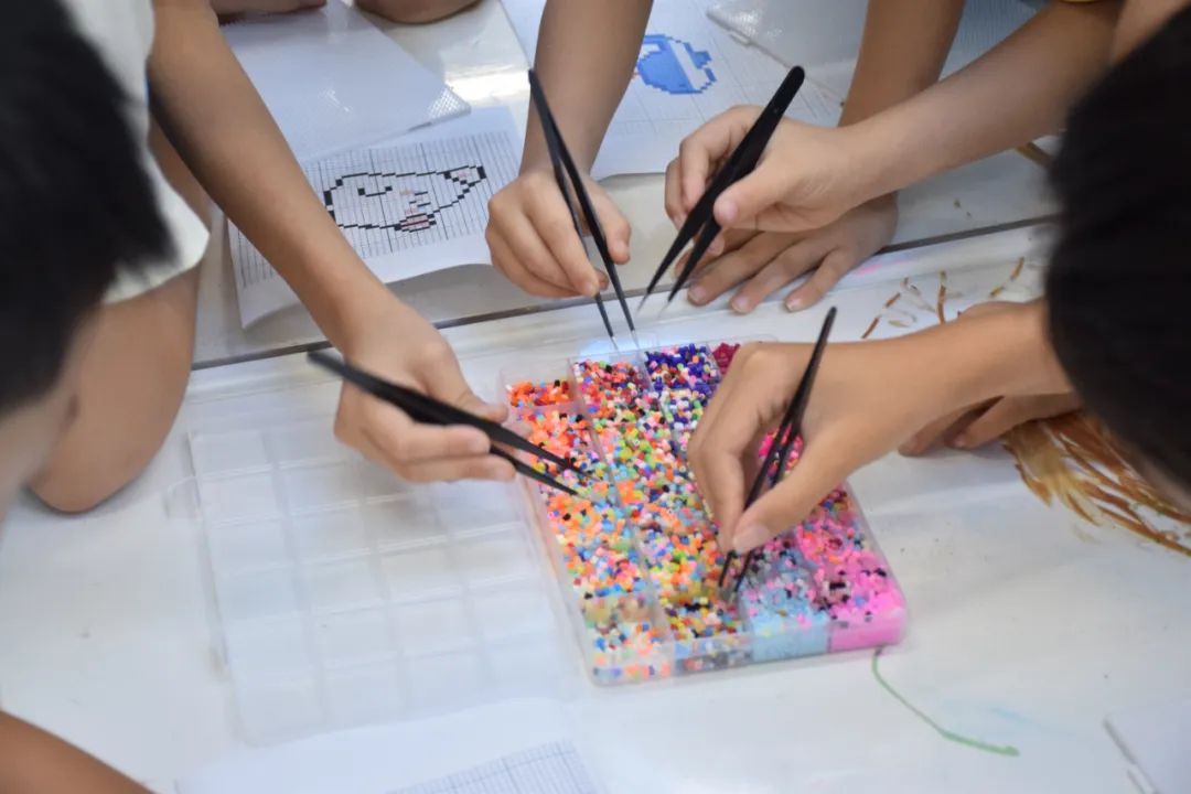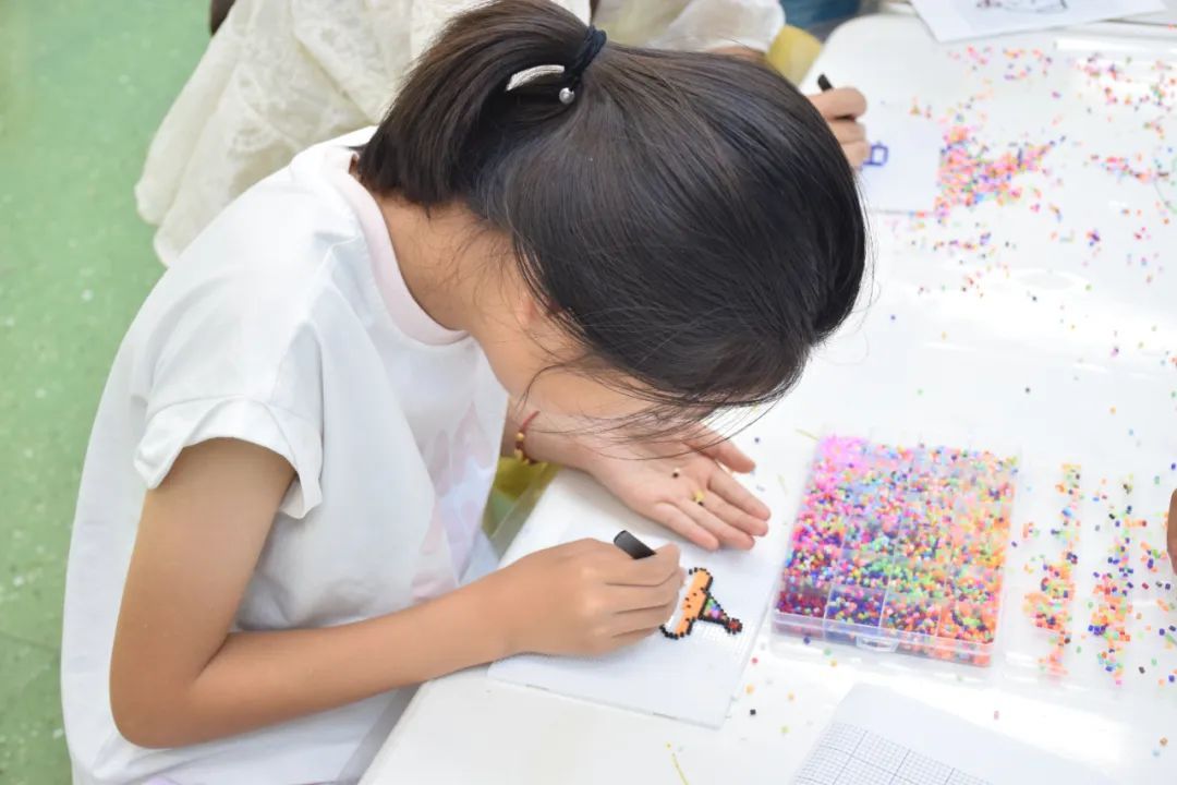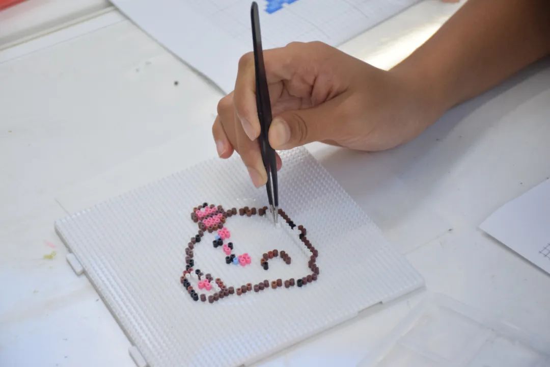 活动现场,艺术导师指导学员以彩色拼豆为像素单元,通过拼贴熨烫工艺再现经典动漫形象。该创作形式操作简便,新手亦可快速掌握。“几粒拼豆就能呈现生动图案,成就感十足。”学员们说道。