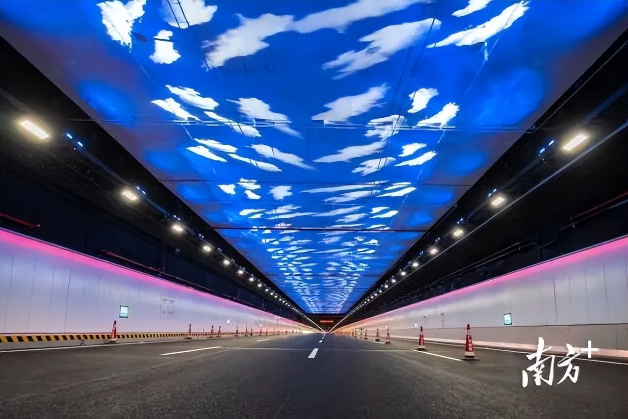 车辆驶入西人工岛,一路向东,便潜入深中通道海底隧道。隧道内,车流滚滚,快速通行。