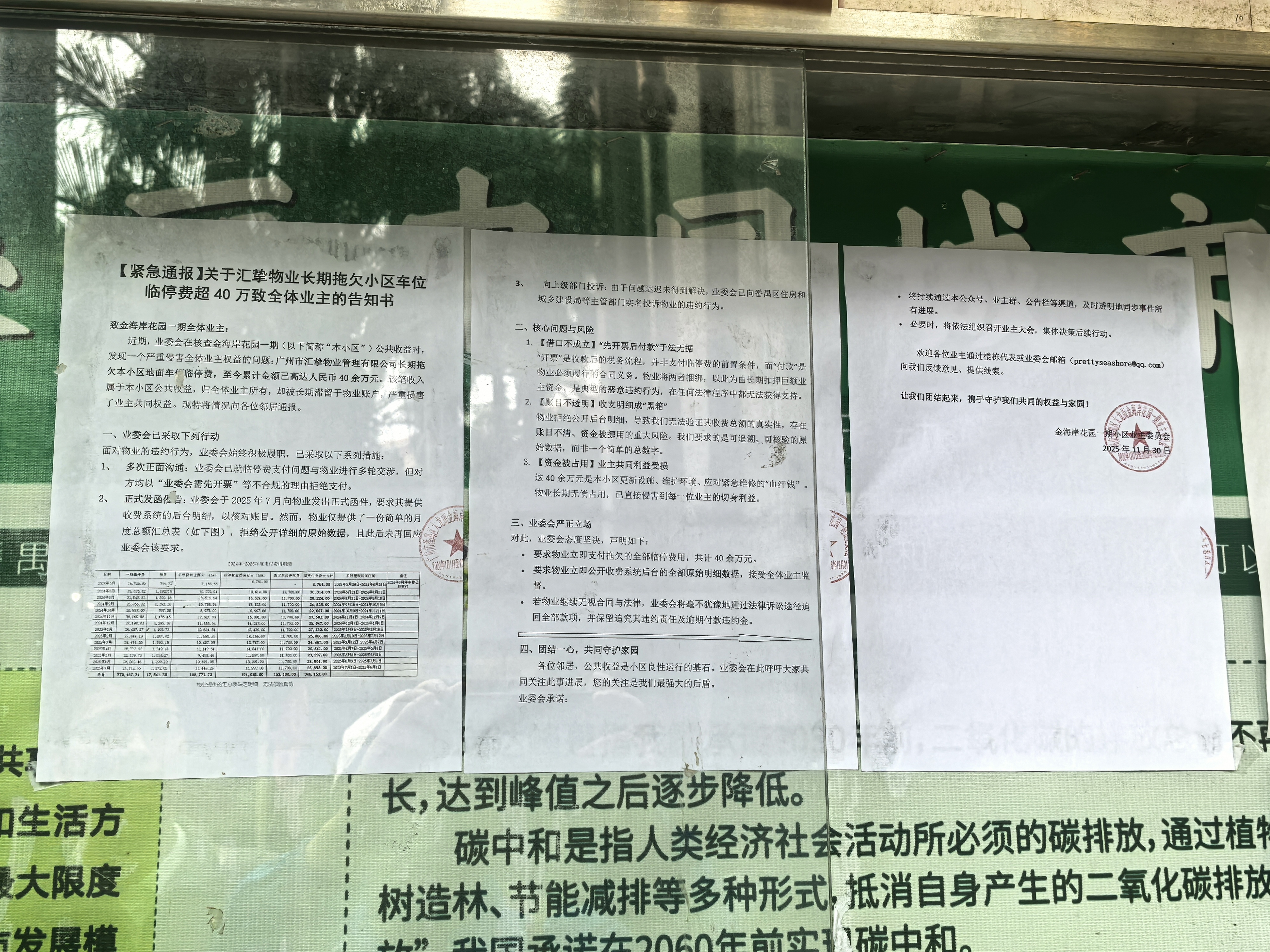 据金海岸花园一期业委会负责人介绍,小区建成于2002年,是广州市首批获评“示范性小区”的住宅项目。小区共有17栋66梯建筑,1580户住宅及39户商铺,以欧美风情园林著称。然而,这座曾获殊荣的社区,却在业主自治道路上屡经波折。