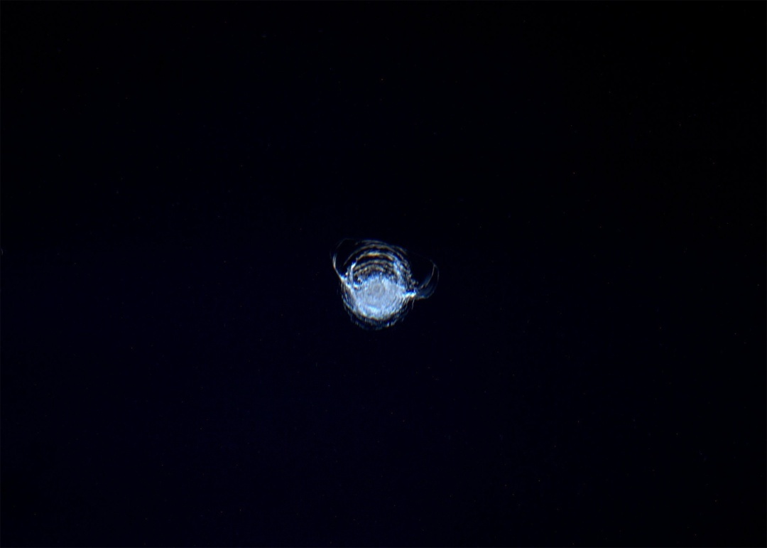 下图是国际空间站穹顶舱窗口由微小碎片撞击留下的痕迹,直径约8毫米。