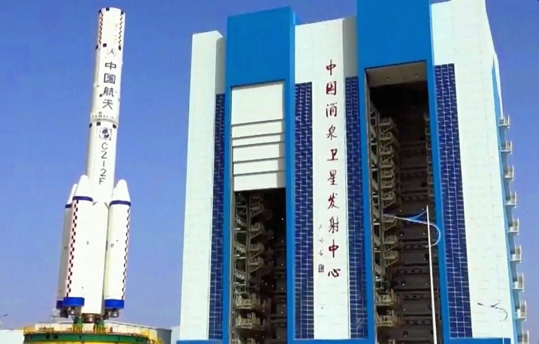 在酒泉卫星发射中心执行应急救援值班任务的长征二号F型运载火箭 | 央视新闻