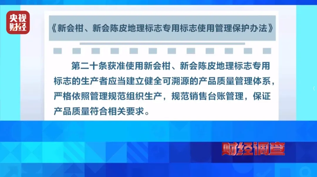 据央视《财经调查》报道,栏目接到群众举报,反映陈皮市场存在年份虚标、产地及工艺造假等问题,千元一斤的“年份陈皮”亦可能名不副实。