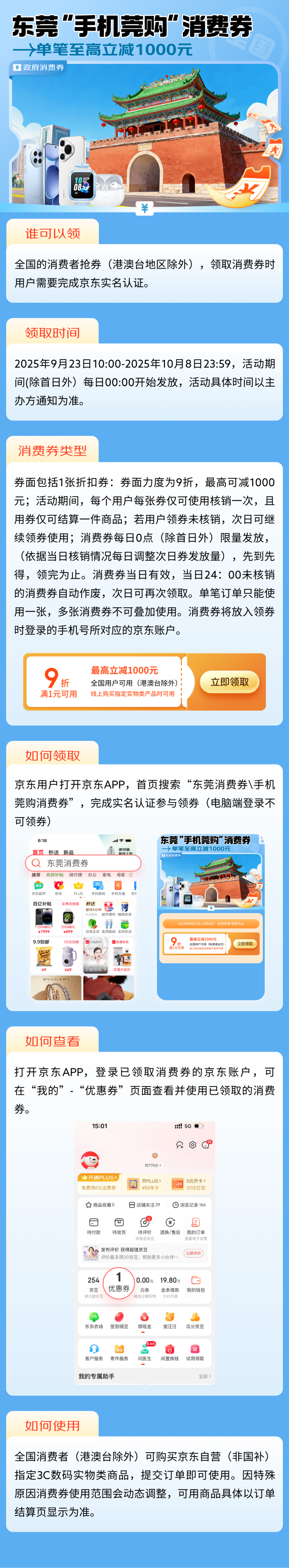 京东商城向全国消费者(除港澳台)发放东莞3C数码消费券