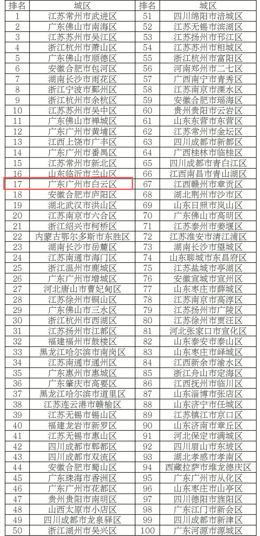 与此同时,白云区正以硬核实力绘就“一园两城三都四区”发展平台新版图,凭借着连续8年上榜全国综合实力、投资潜力百强区的深厚积淀,成为投资者的发展热土。