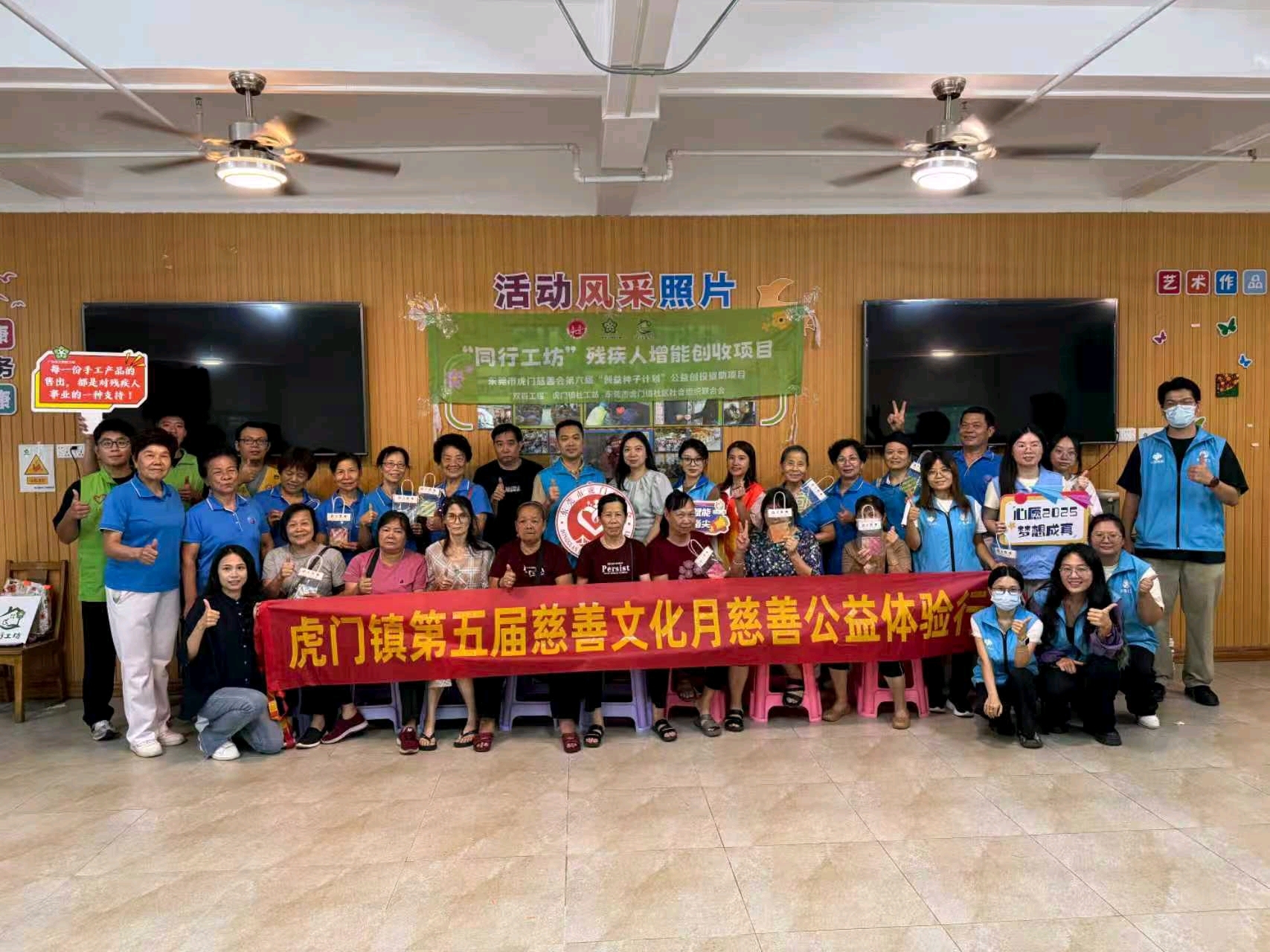 9月22日,“同行工坊”项目技能产品制作专场在新湾社区三东老人院长者饭堂举行。虎门慈善会秘书长黄绮琴、“同行工坊”残障人增能创收项目服务对象及多家纾困赋能类项目代表共同参与。活动采取“1+1”协作模式,由项目代表与“同行工坊”服务对象共同完成手工艺品制作。项目代表现场认购成品,以实际行动支持残障人就业赋能。