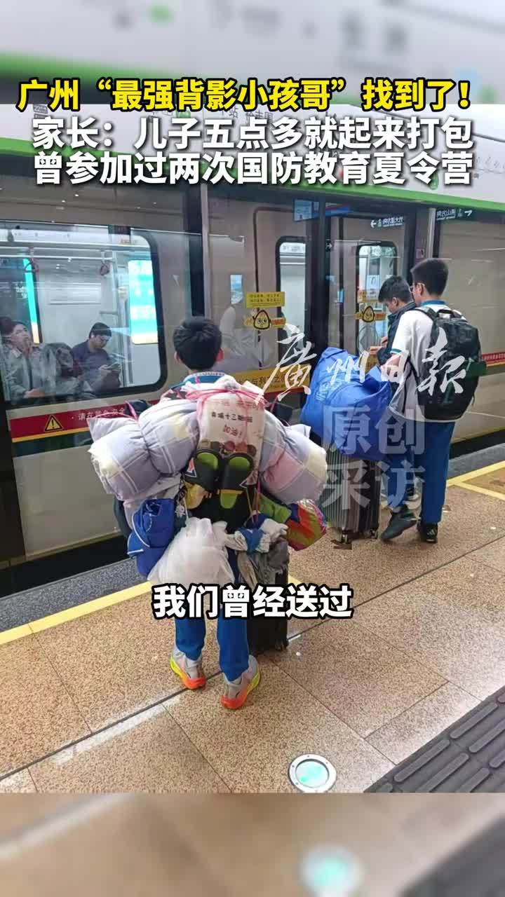 广州“最强背影小孩哥”找到了!家长:儿子五点多就起来打包,曾参加过两次国防教育夏令