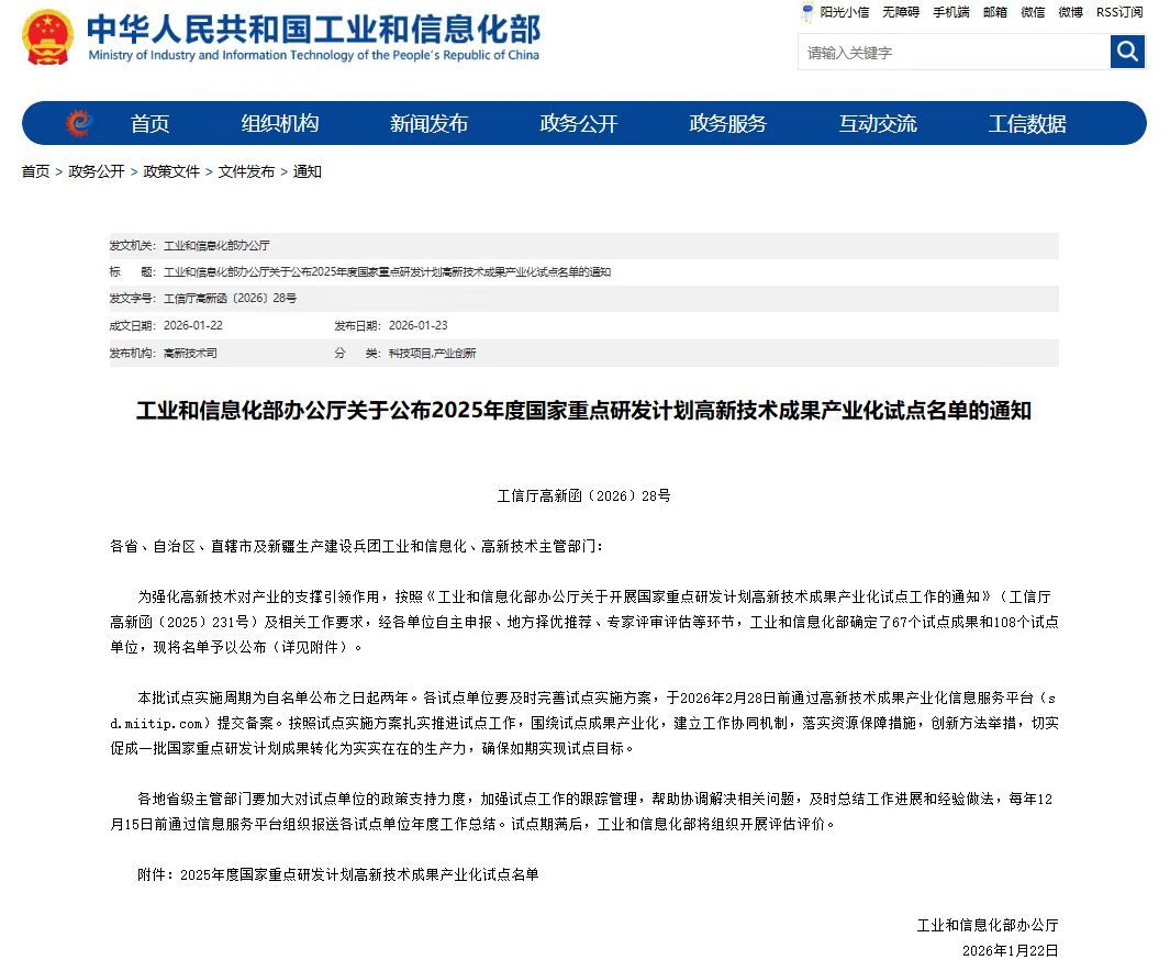 1月23日,工业和信息化部公布2025年度国家重点研发计划高新技术成果产业化试点名单。大湾区科技创新服务中心(下称“大湾区中心”)凭借技术壁垒和研发实力,成功入选2025年度国家重点研发计划高新技术成果产业化试点单位(第三方服务类试点单位)。全国仅19家单位入选第三方服务类试点单位。广东省入选试点名单的单位还包括:粤港澳大湾区(广东)国创中心入选产业化实施类试点单位(全国43家单位入选),广州明珞装备股份有限公司的“个性化定制产业工业互联平台”入选工业软件试点成果(全国工业软件试点成果入选11项)等。