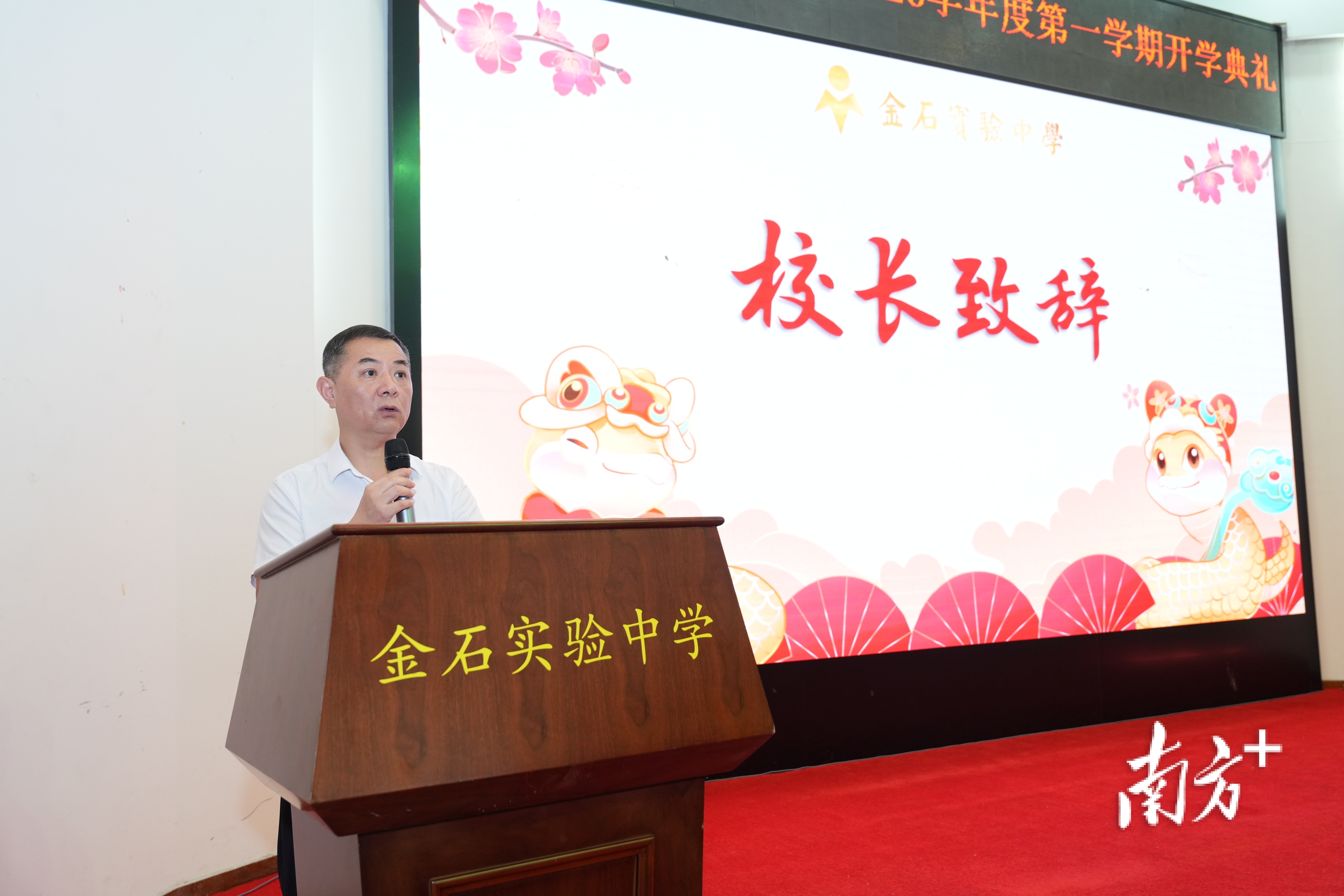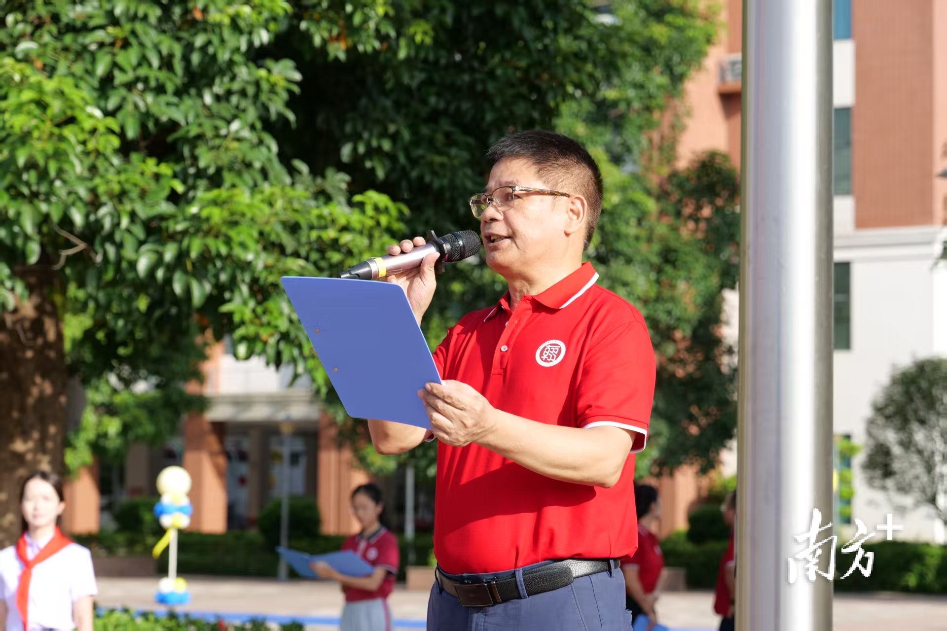 开学典礼上,南海翰林实验学校校长盘文健提到,即将到来的纪念中国人民抗日战争暨世界反法西斯战争胜利80周年阅兵,彰显了祖国从“落后就要挨打”到如今“平视世界”的大国实力,这场阅兵不仅是一次历史的回望,更是一次实力的展示、一种精神的传承。