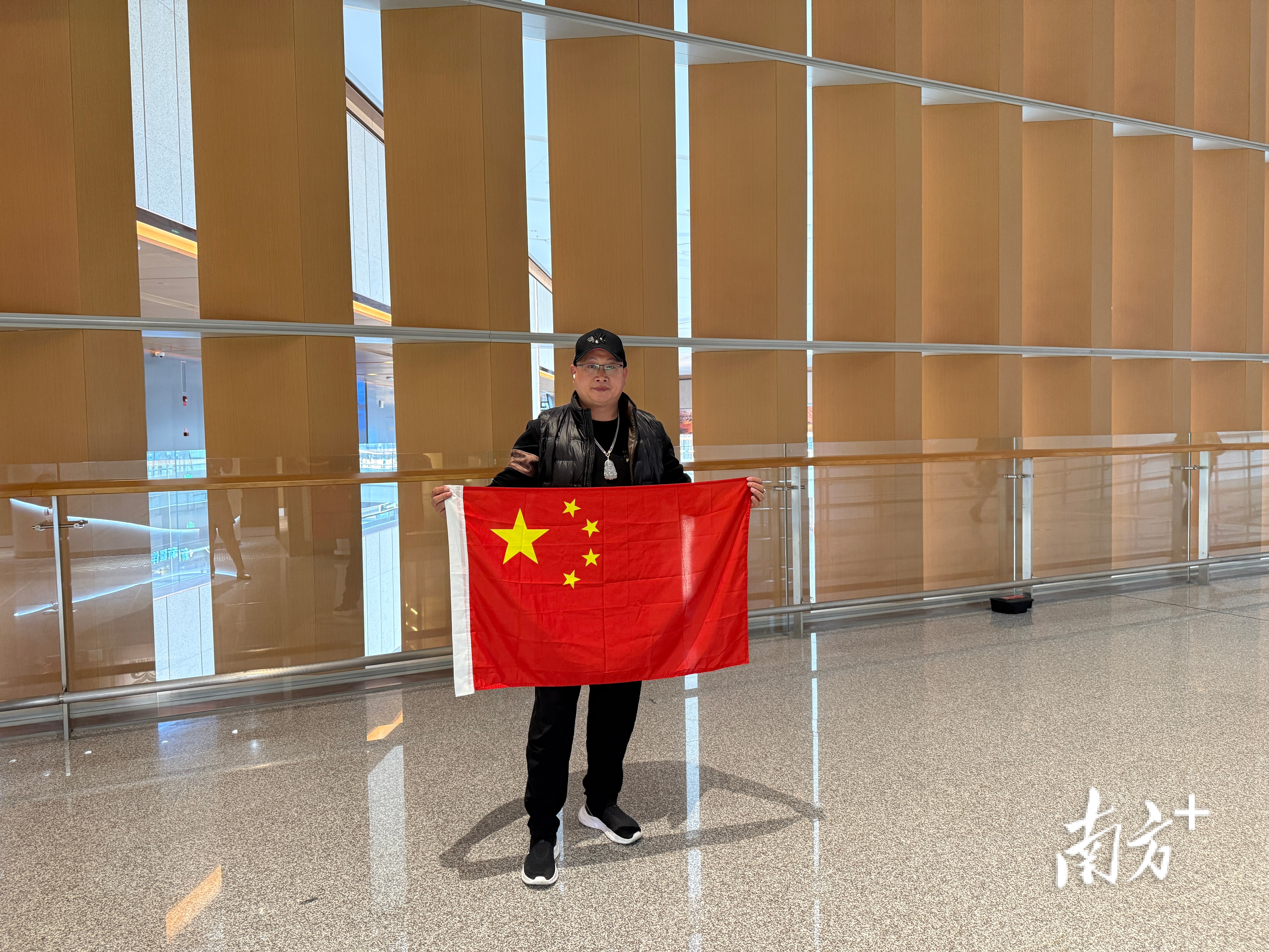 3月4日,肖朝会坐上了回国的航班,当飞机上的地图显示进入了中国领空,他感觉“心很踏实”。至于那面没有用上的国旗,他也带回了广州,并表示会好好珍藏起来。回顾这次撤侨,他说,“我能感受到祖国对海外侨胞的这种保护,确实是温暖又有力量。”