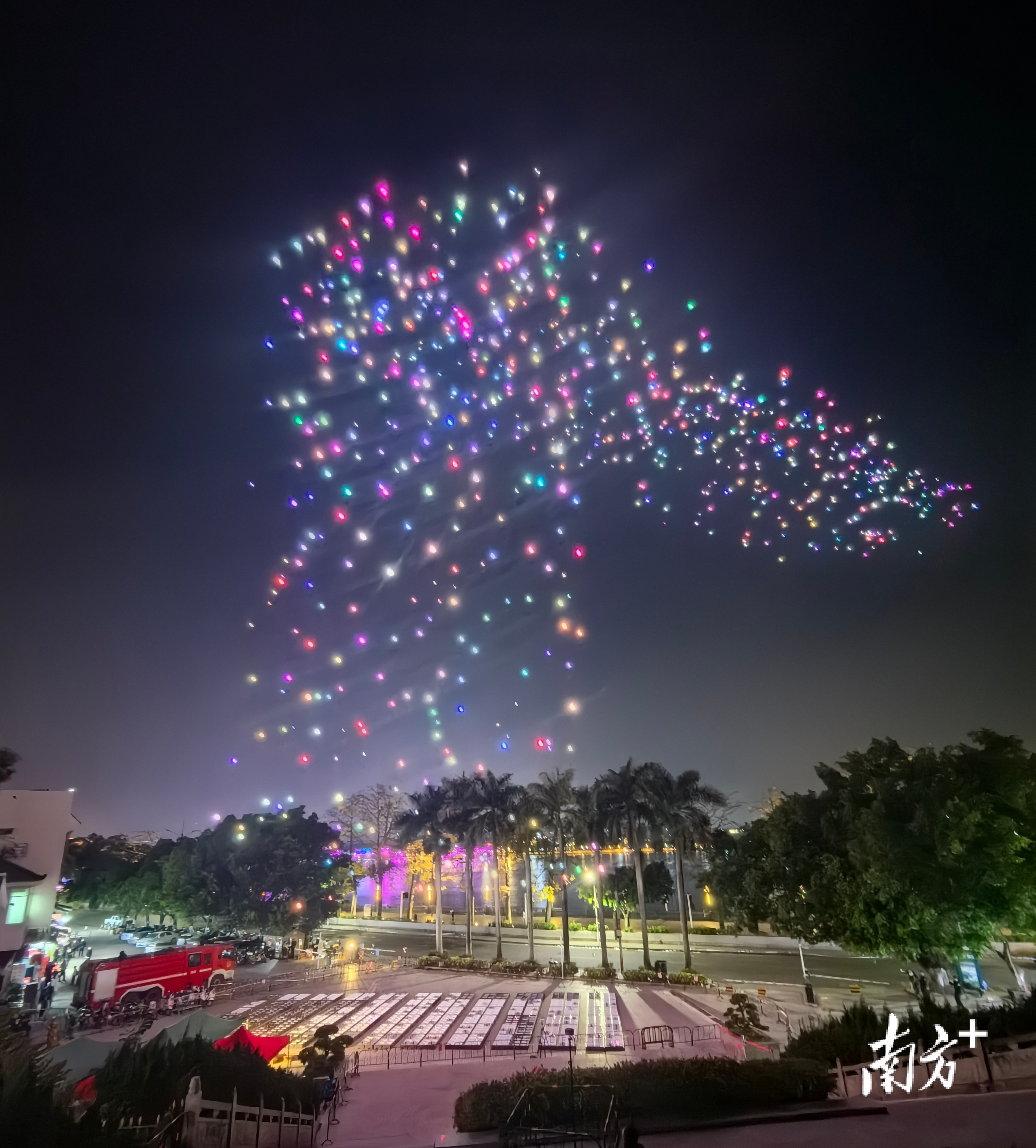 无人机阵列化成璀璨银河回到起点。 陈锦煌 摄