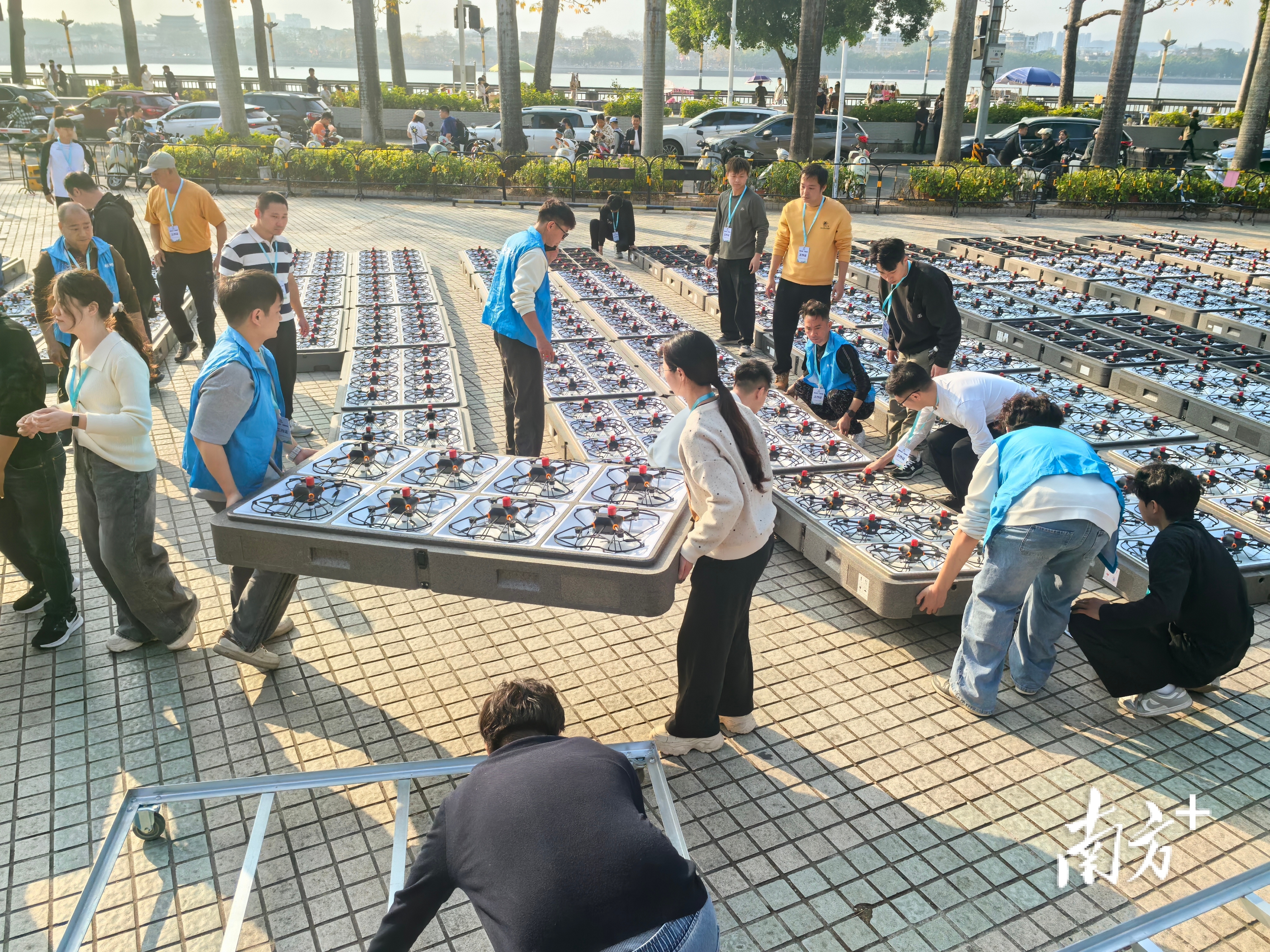 在韩江两岸,活动现场秩序井然。据潮州文旅投相关工作人员介绍,活动主办方及公安、交警、应急等多部门按照既定工作方案,提前对韩文公祠前广场等核心区域实施了清场和管控,并在韩江东西两岸的沿江步道设置了安全的公共观赏区。大量市民游客提前抵达,在韩江西岸的滨江长廊等开阔地带有序观赏,全程文明观演。