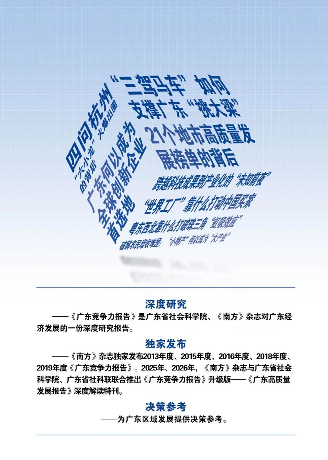 《广东竞争力报告》是广东省社会科学院、《南方》杂志连续多年推出的关于广东经济发展的深度研究报告。2026年1月,《南方》杂志与广东省社会科学院、广东省社科联联合推出《广东竞争力报告》特刊升级版——《2025年度广东高质量发展报告》深度解读特刊。
