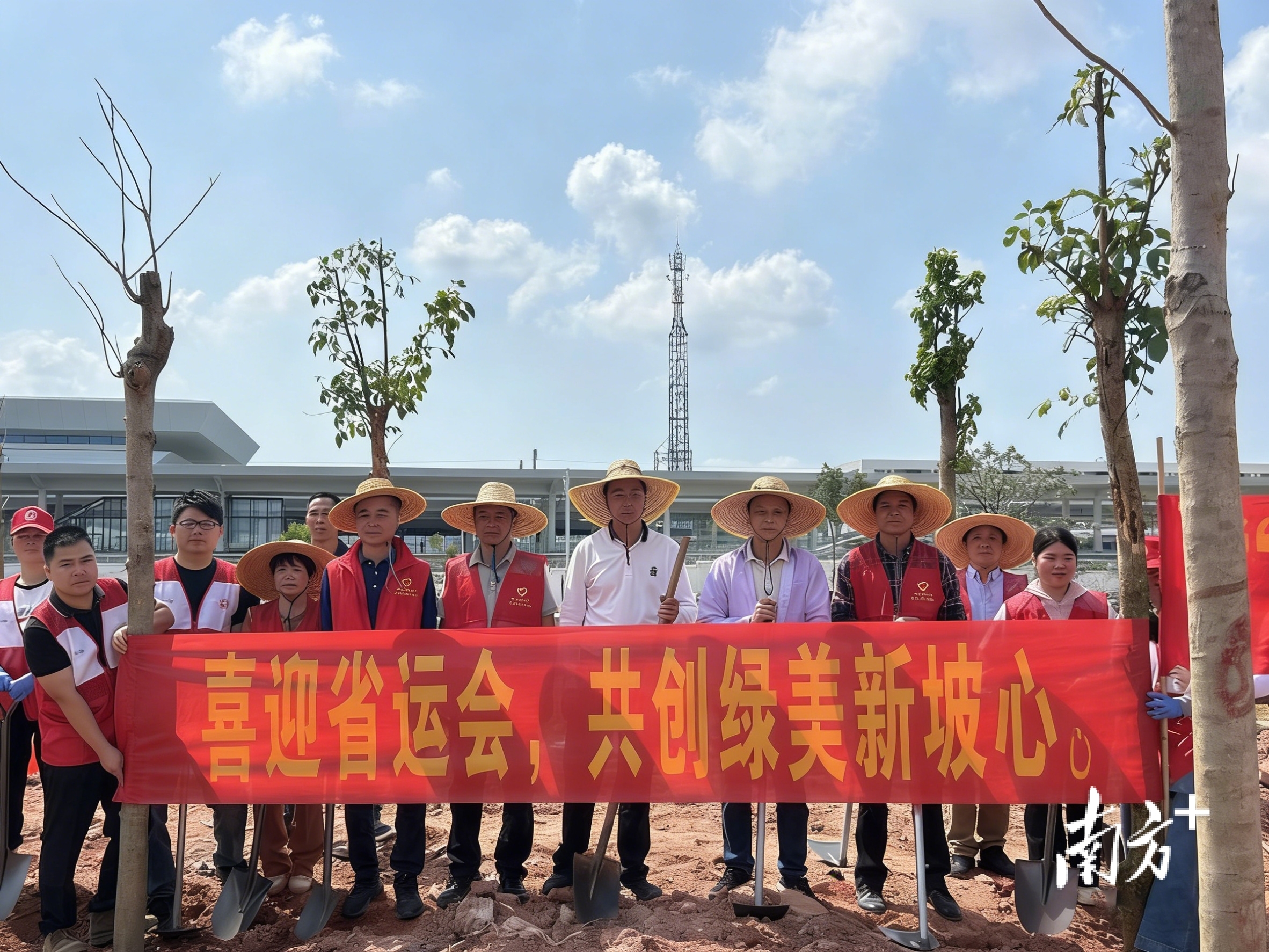 沿着村道往高铁站方向走,坡心镇村干部干得热火朝天。在高铁进入茂名的“第一眼”风景线上,他们按照技术人员指导,精心栽种了适应性强、观赏性佳的火焰木、菩提榕等苗木,力求打造亮眼生态名片,以生态绿化扮靓墟村颜值,迎接省运会到来。