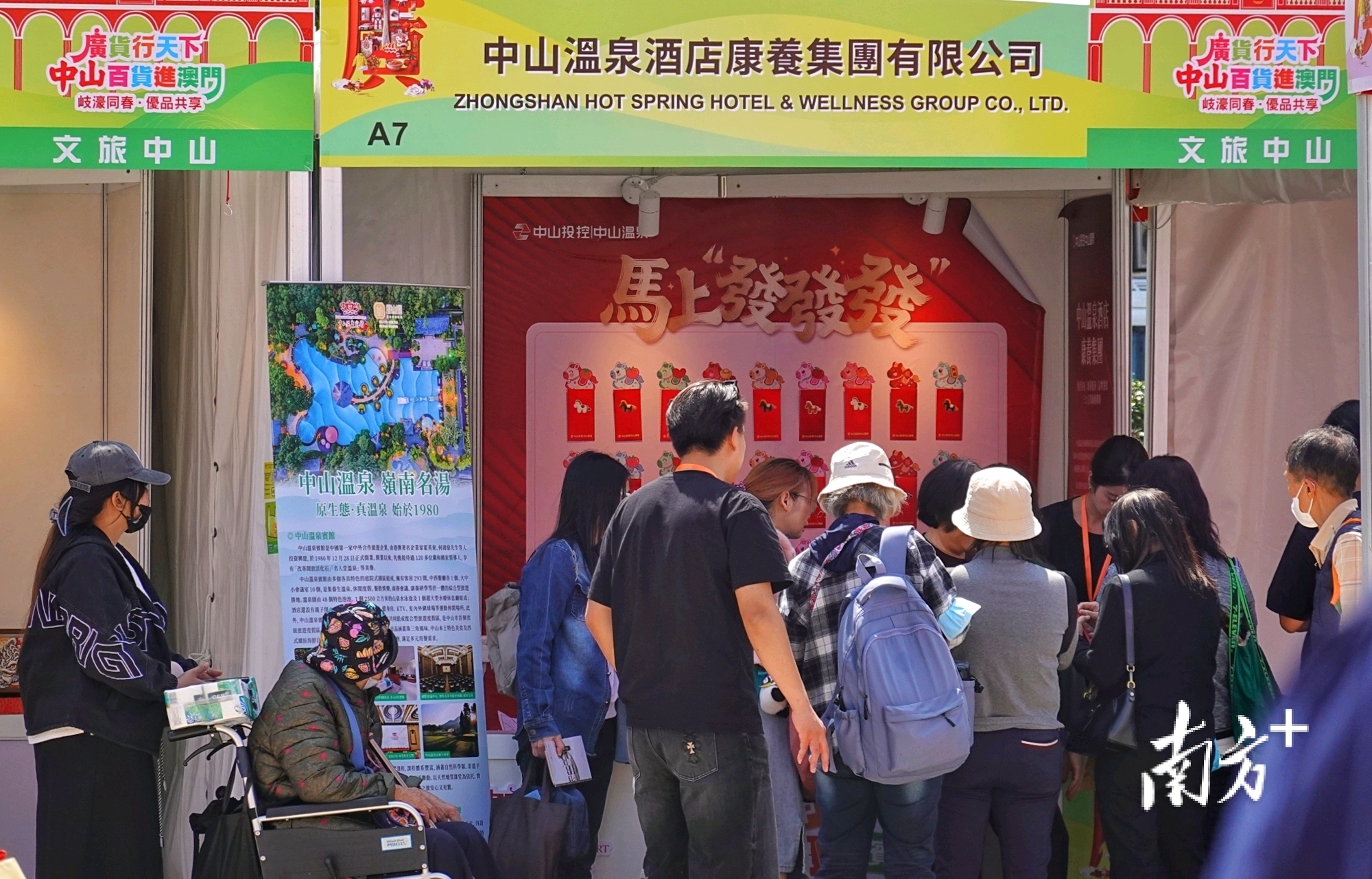 中山温泉酒店在现场发放景点优惠券,引来澳门市民游客围观领取。