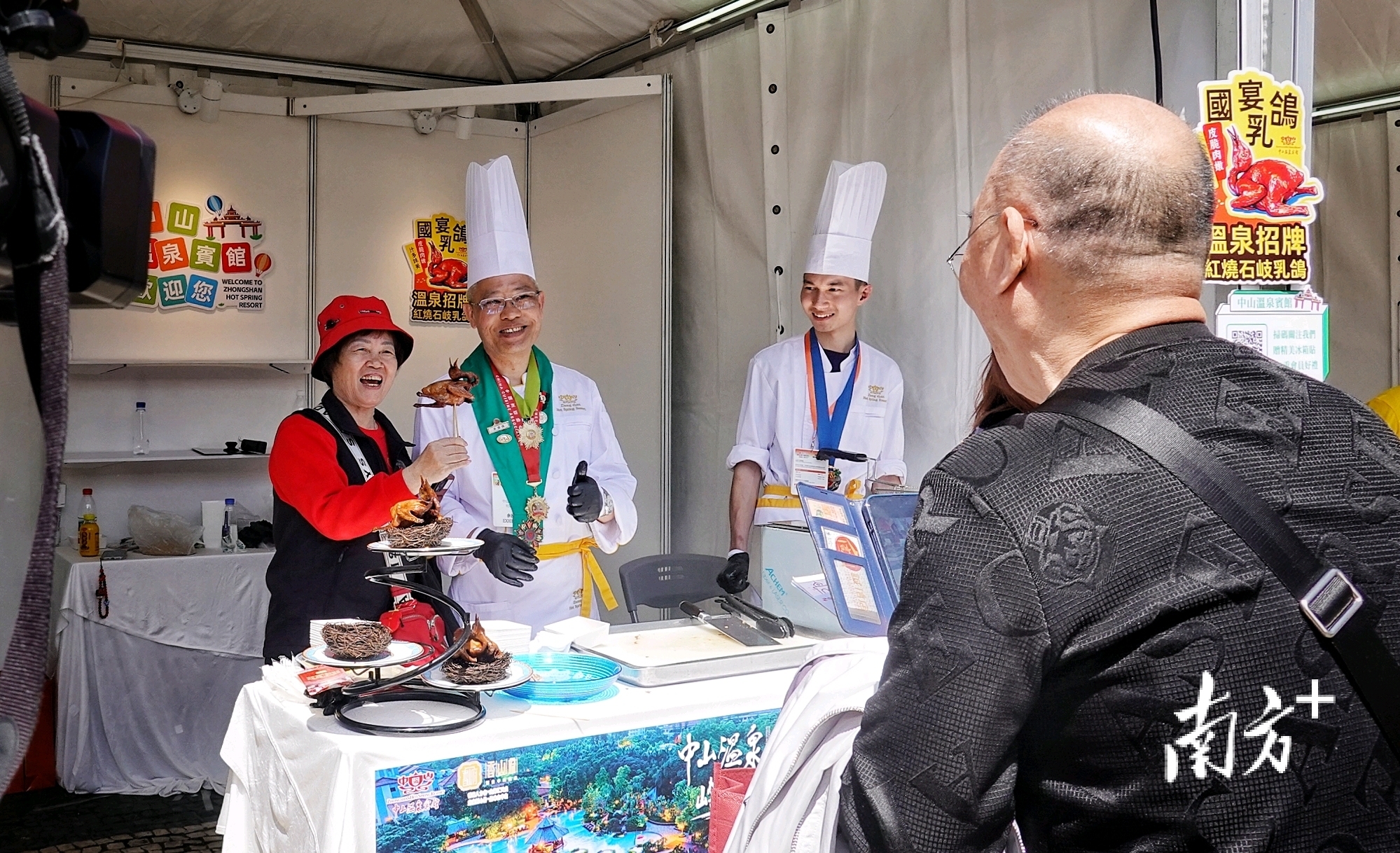 澳门街坊与制作石岐乳鸽的中山大厨合影留念。