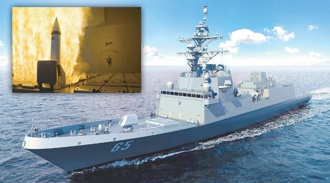 大图为“星座”级护卫舰的效果图。小图为舰载导弹发射瞬间。(图片来源:新华网)