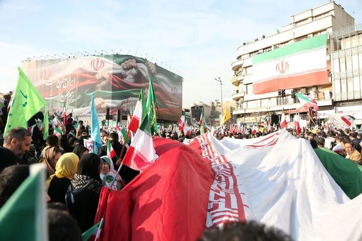 1月12日,在伊朗首都德黑兰,人们参加集会。新华社记者沙达提摄