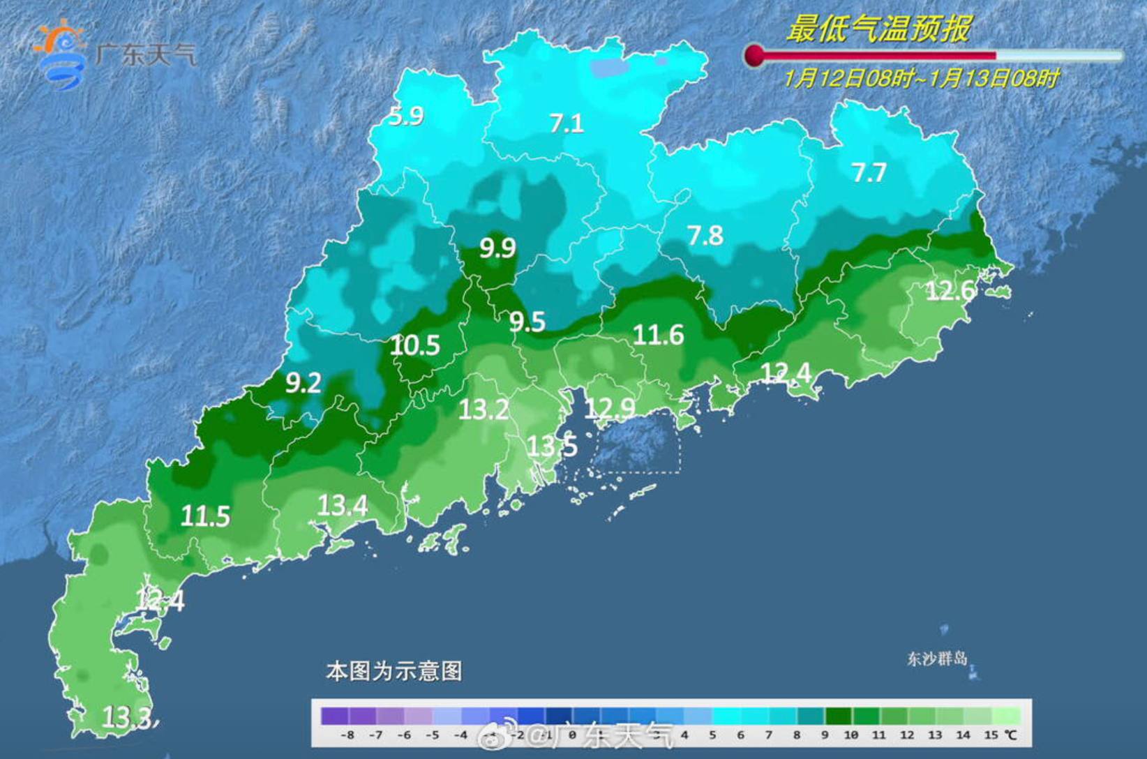 广东最低气温预报。