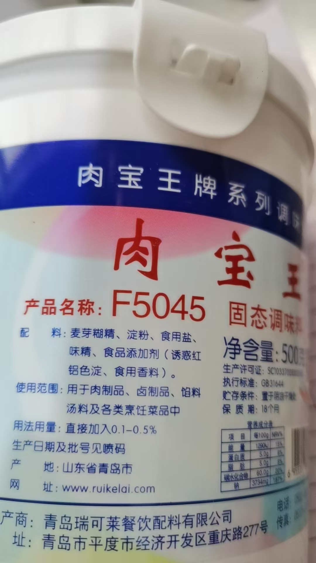 “肉宝王”到底是一款什么调料?南方日报、南方+记者根据小陈回应视频中出具的相关截图发现,这款“肉宝王”的生产厂家为青岛瑞可莱餐饮配料有限公司。2014年,该公司即注册了“肉宝王”商标。