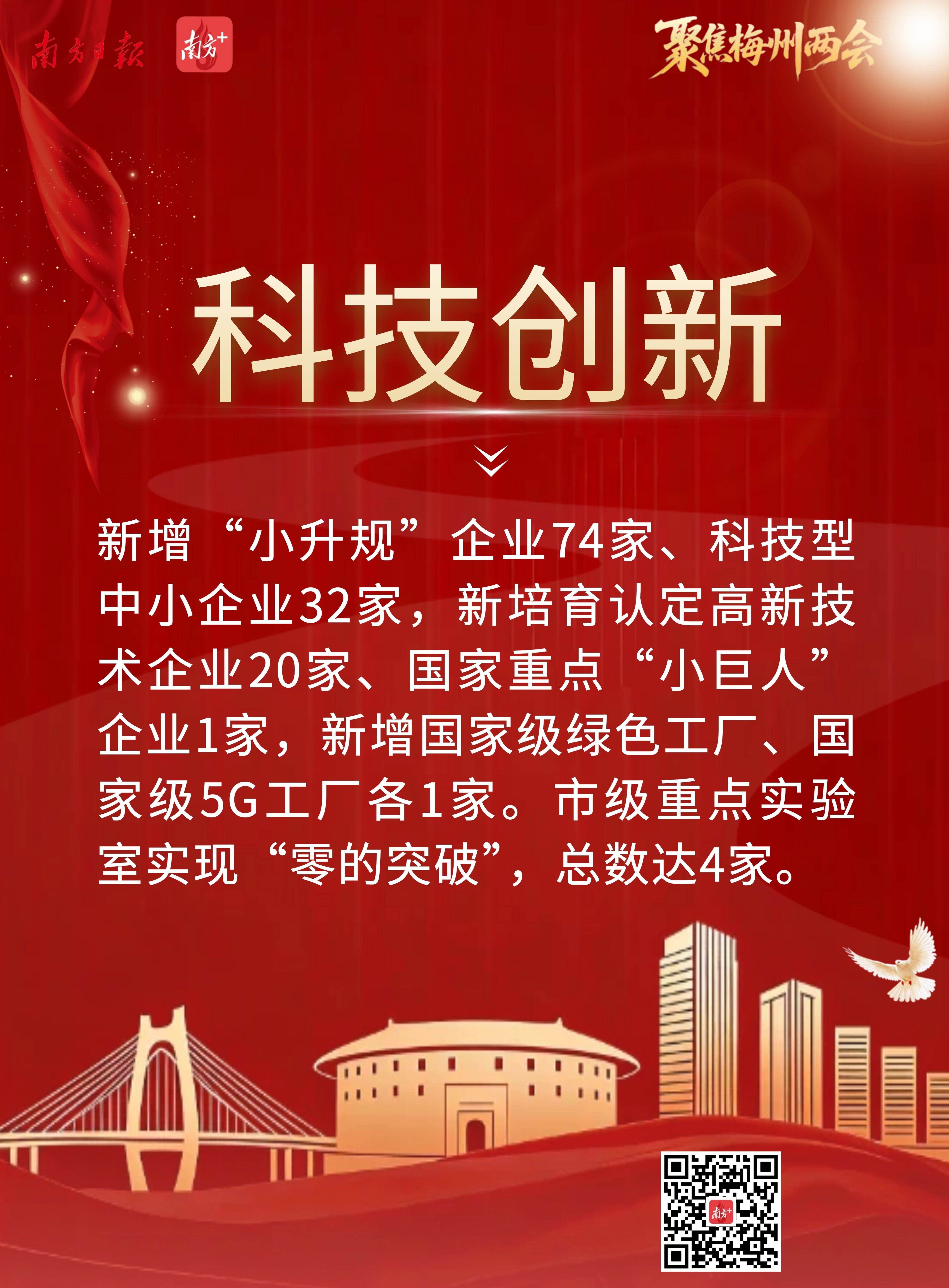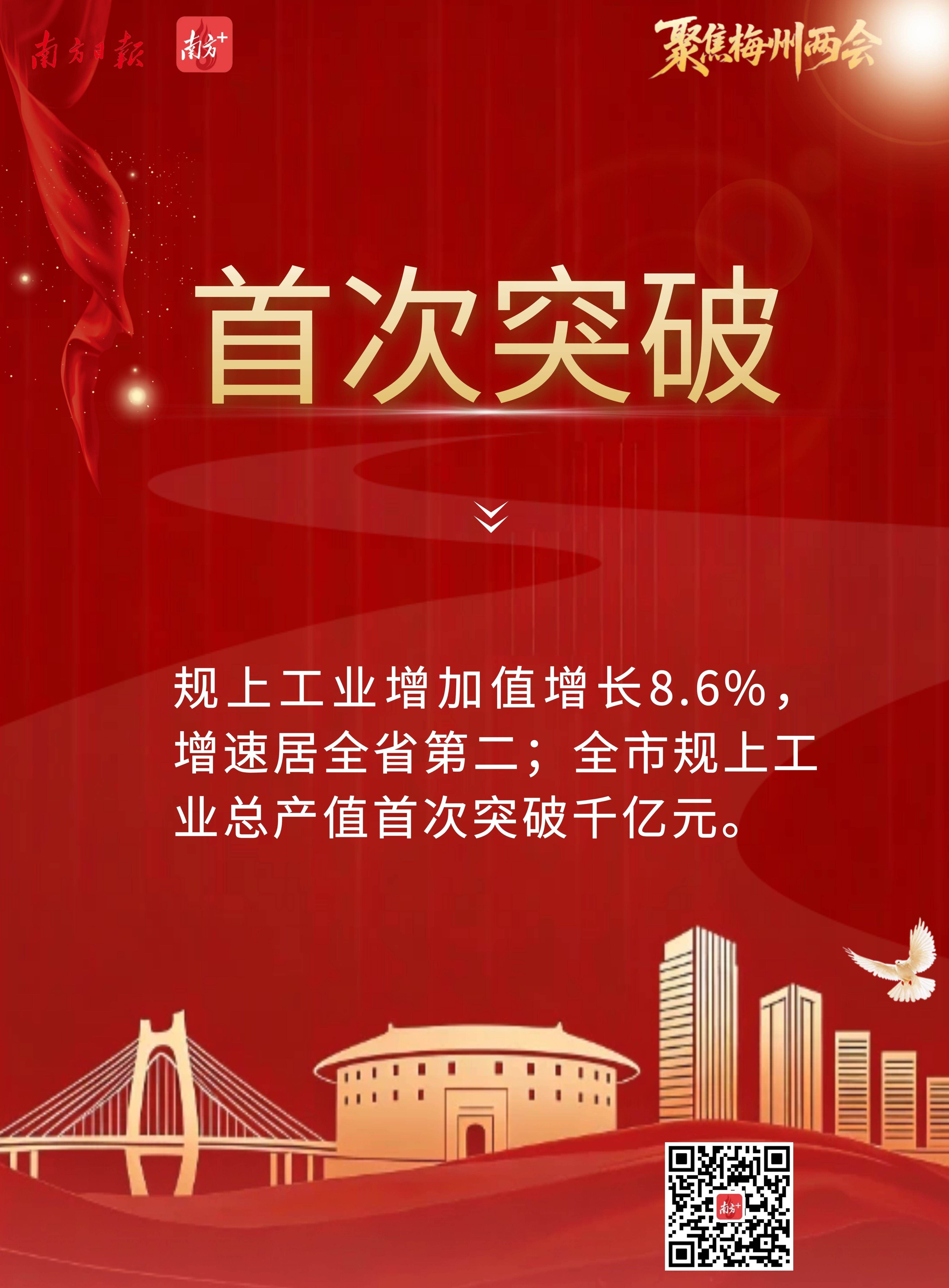 2月4日,梅州市第八届人民代表大会第六次会议开幕。会上,梅州市委副书记、市长王晖作政府工作报告。2025年和“十四五”梅州交出了一份沉甸甸的答卷,鼓舞人心、催人奋进,南方+精心推出九张海报,直观呈现关键数据、重点工程与民生实事,带您读懂梅州2025奋进足迹。