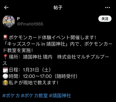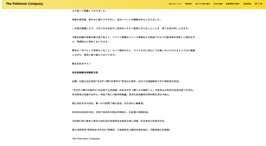 近期,在我公司运营的“宝可梦卡牌训练家网站”的活动页面中,出现了以靖国神社为举办地的活动信息。