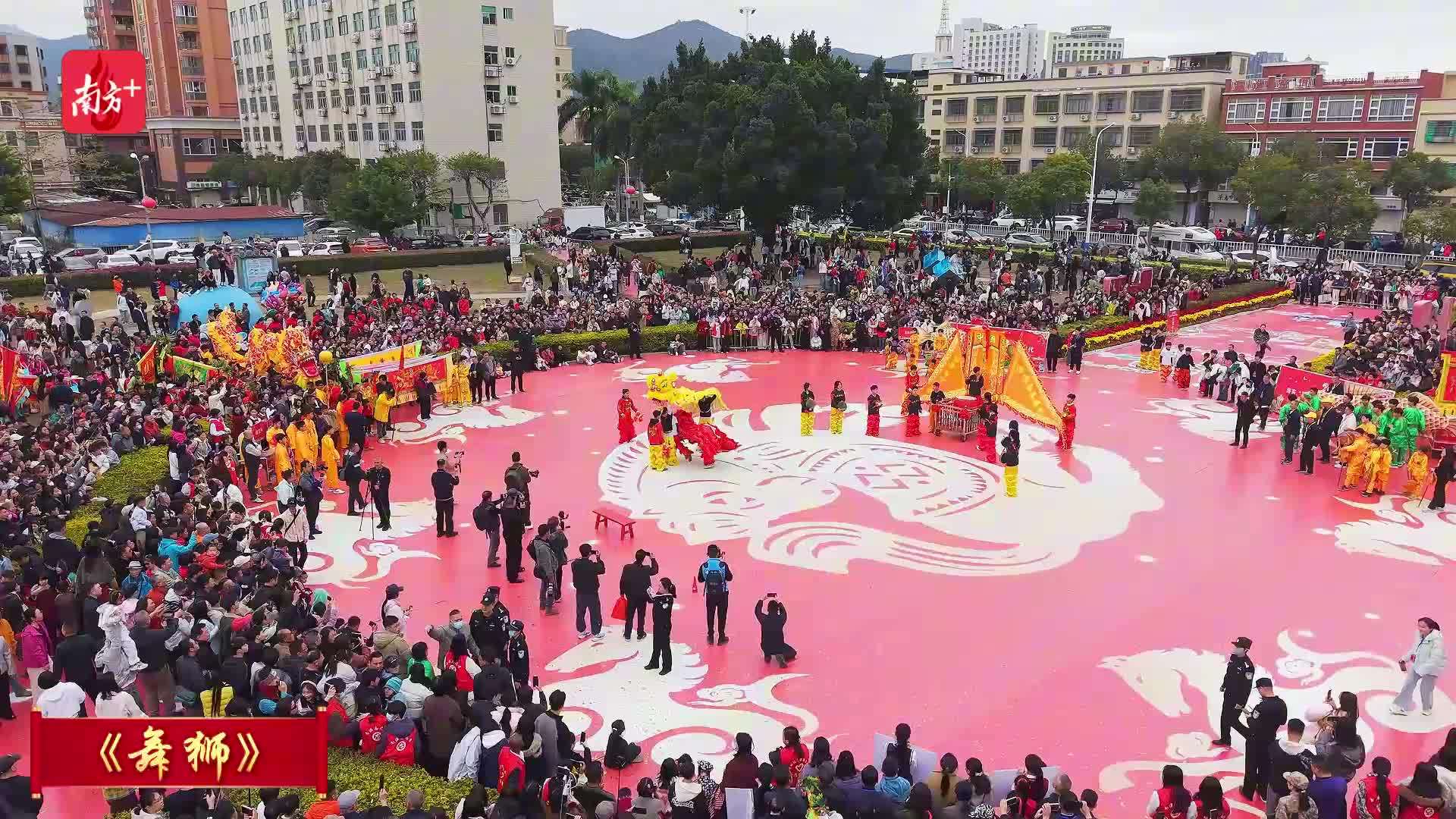 中国鼓队、福娃闹新春舞蹈队率先开场,海岛少年儿童笑容纯真、朝气蓬勃;元德社英歌队融合舞蹈与武术,舞步雄健豪放,气势磅礴;深澳正文学校舞狮队将传统技艺与少年气息结合,醒狮腾跃送祥瑞;海滨村渔民手举渔灯,再现耕海牧渔、鱼跃人欢的场景,寄托风调雨顺、渔业兴旺的祈愿。